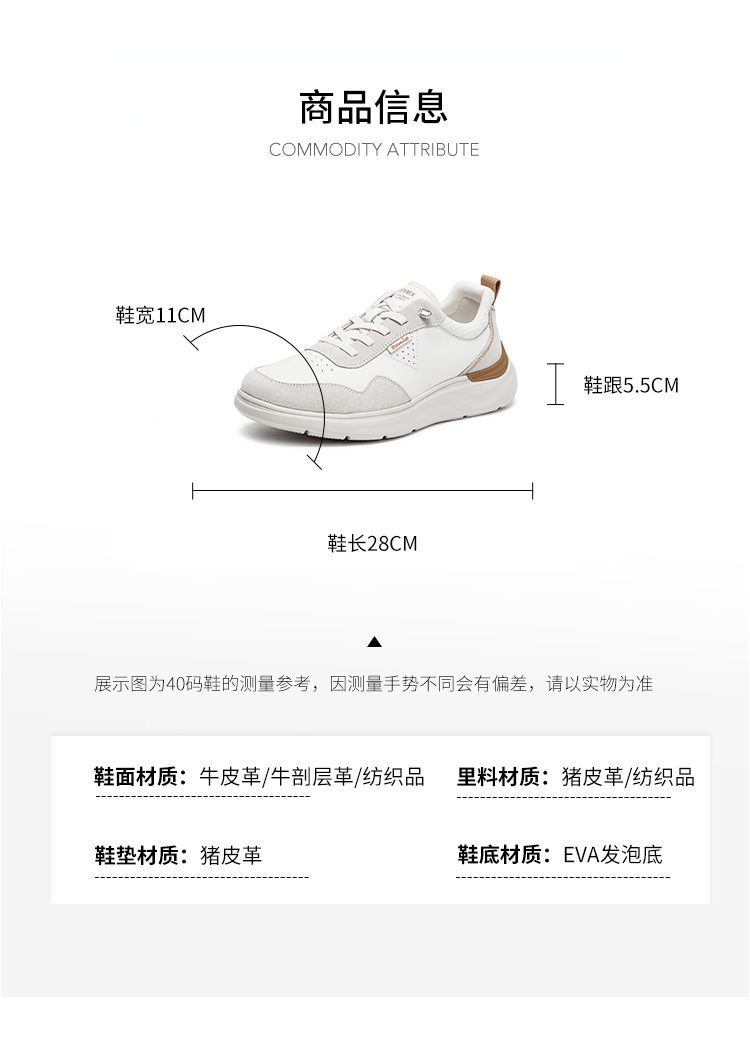 | 风格:休闲 | 色系:灰色 | 跟高数值:5.5CM | 40码鞋宽参考(男):11CM | 性别:男子 |