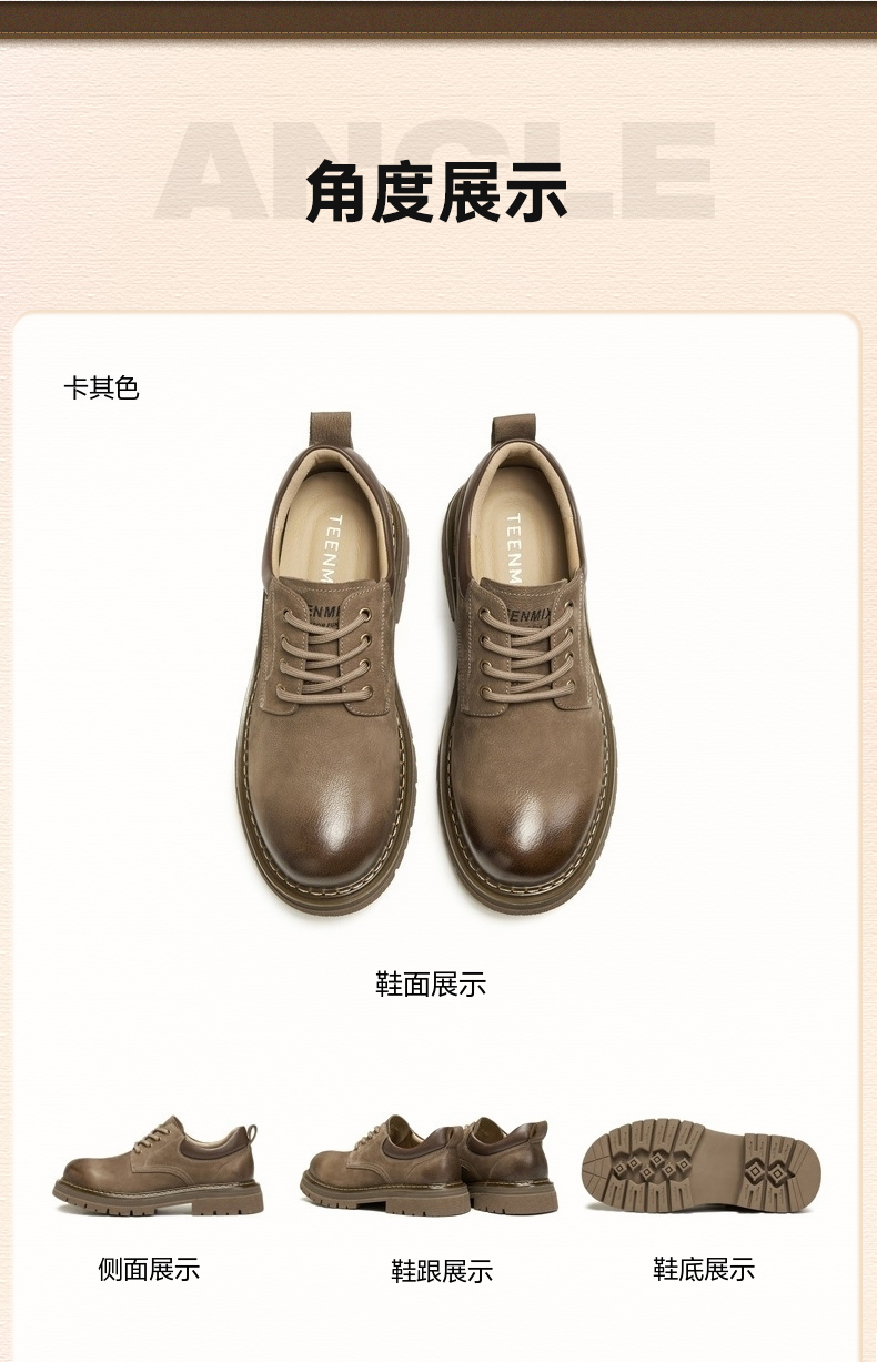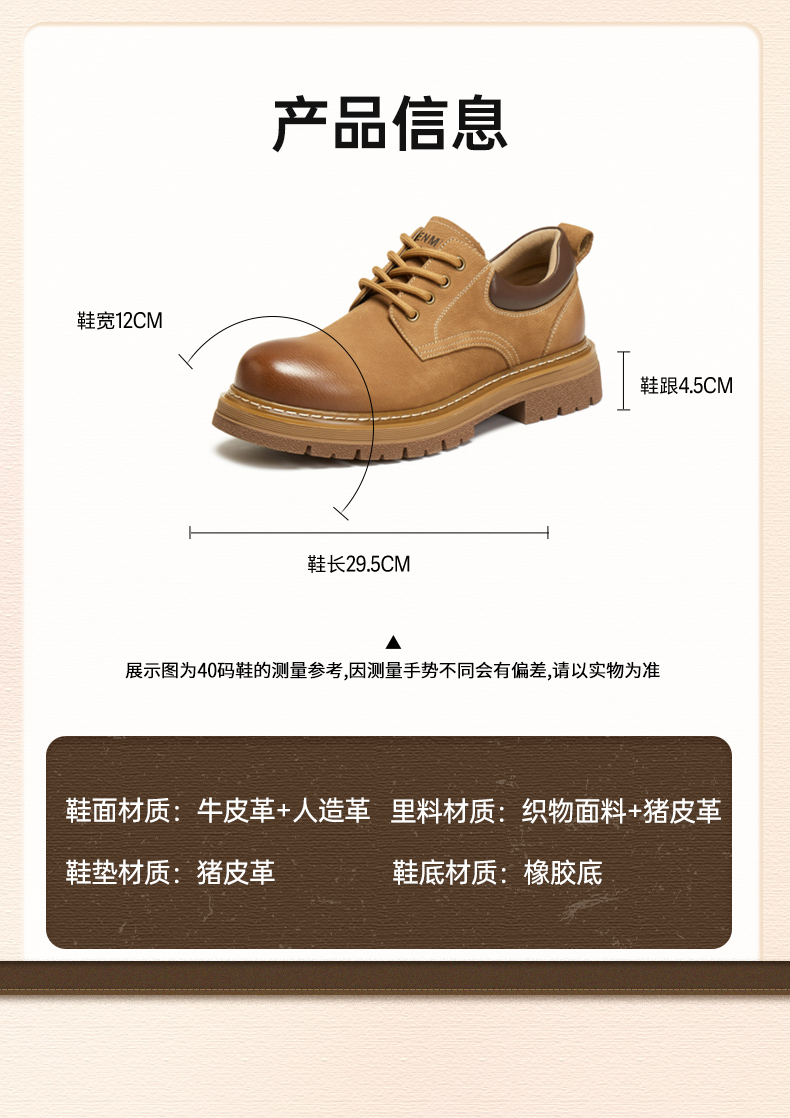 | 风格:休闲 | 色系:卡其 | 跟高数值:4.5CM | 40码鞋宽参考(男):12CM | 性别:男子 |