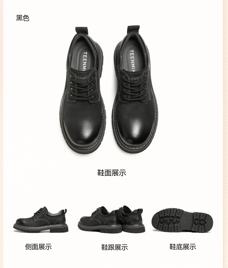 | 里料材质:猪皮革织物 | 上市时间:2026年春季 | 制鞋工艺:胶贴皮鞋 | 款式季节:春季 | 鞋垫材质:猪皮革 |