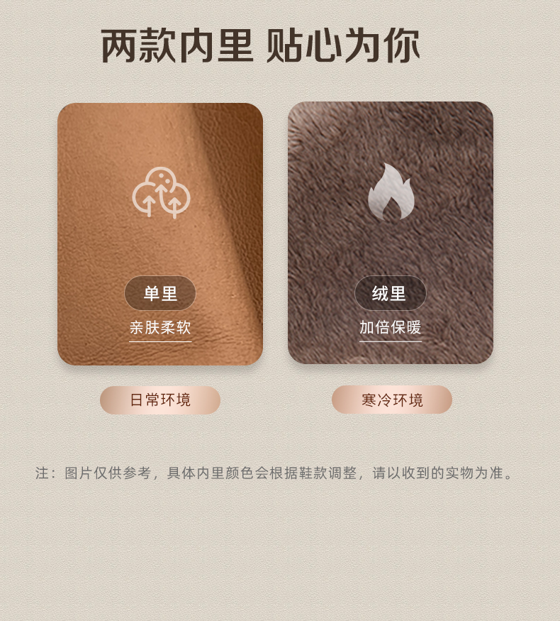 | 里料材质:猪皮革人造短毛绒 | 制鞋工艺:胶贴皮鞋 | 鞋垫材质:人造短毛绒 | 款式季节:冬季 | 皮质特征:二层皮 |