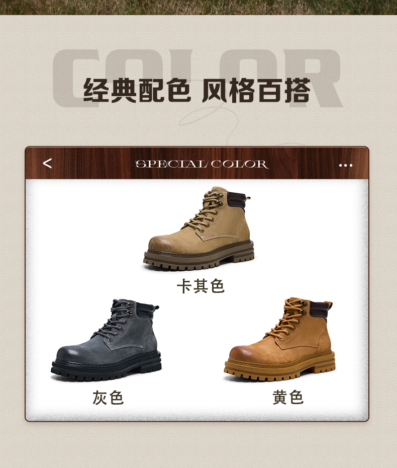 | 闭合方式:系带 | 40码鞋宽参考(男):12CM | 靴筒口围:30CM | 上市时间:2024年冬季 | 鞋类流行款式:工装靴 |
