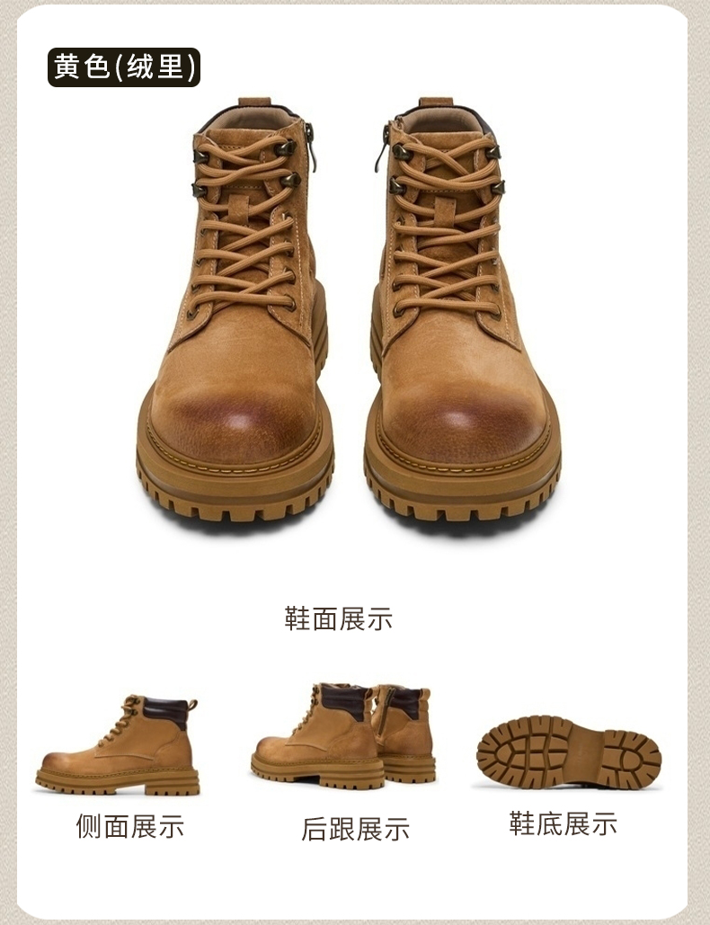 | 闭合方式:系带 | 40码鞋宽参考(男):12CM | 靴筒口围:30CM | 上市时间:2024年冬季 | 鞋类流行款式:工装靴 |
