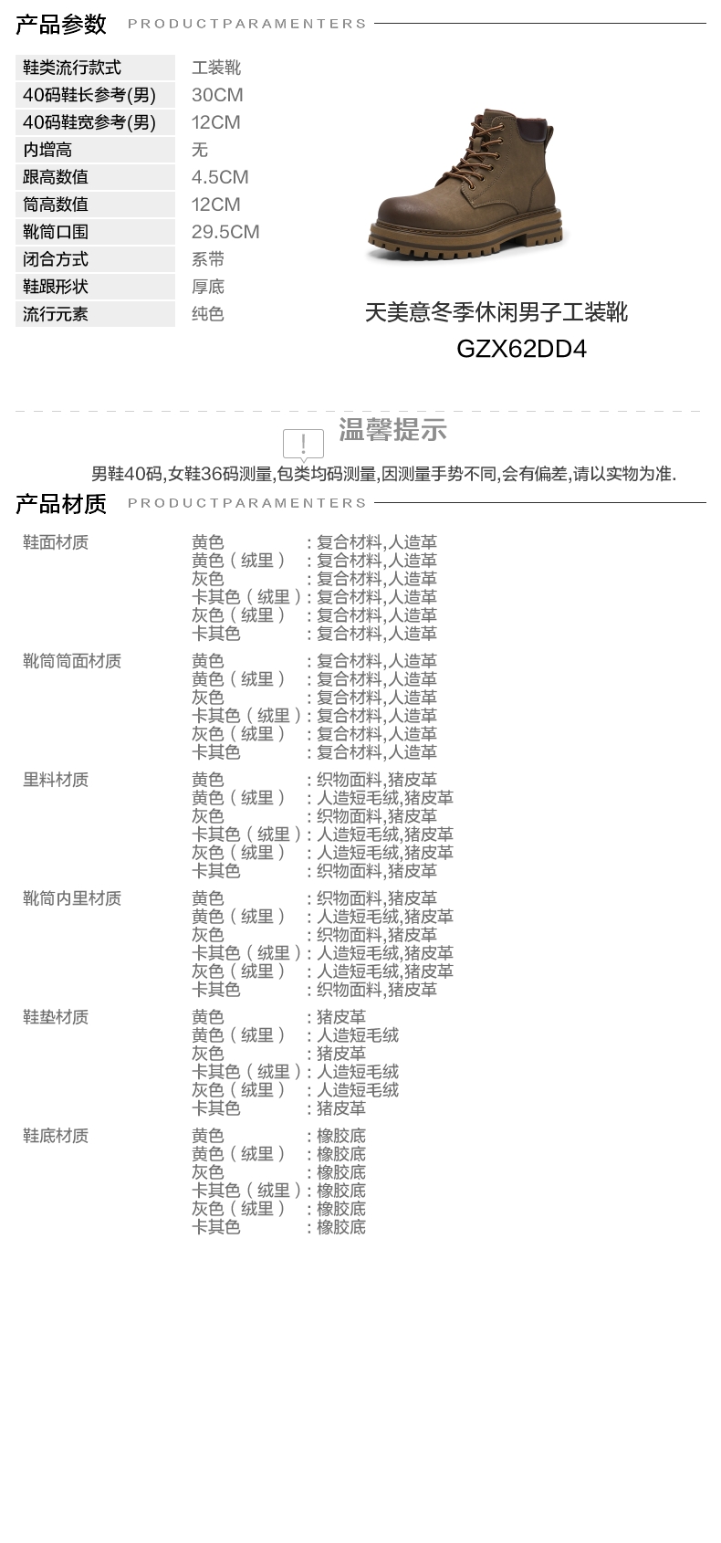 | 40码鞋宽参考(男):12CM | 靴筒口围:29.5CM | 风格分类:工装鞋 | 上市时间:2024年冬季 | 鞋类流行款式:工装靴 |
