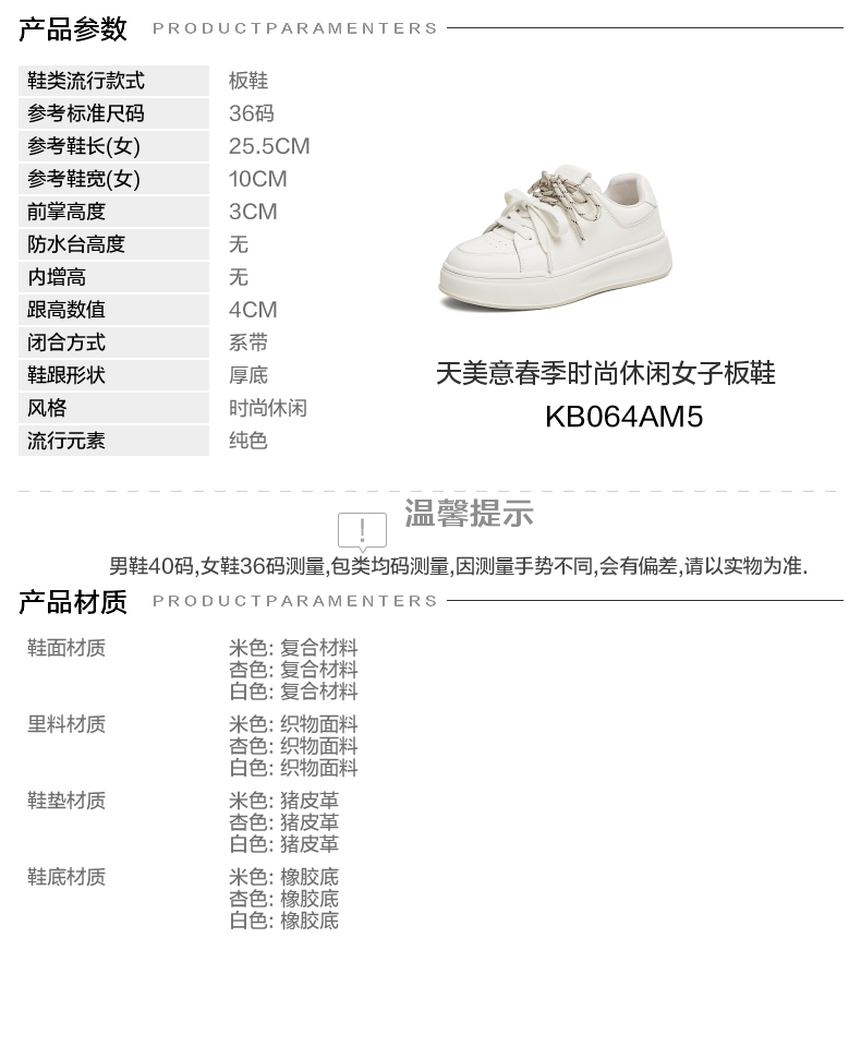 | 参考鞋宽(女):10CM | 风格:时尚休闲 | 年份:2025年 | 色系:米色 | 参考标准尺码:36码 |