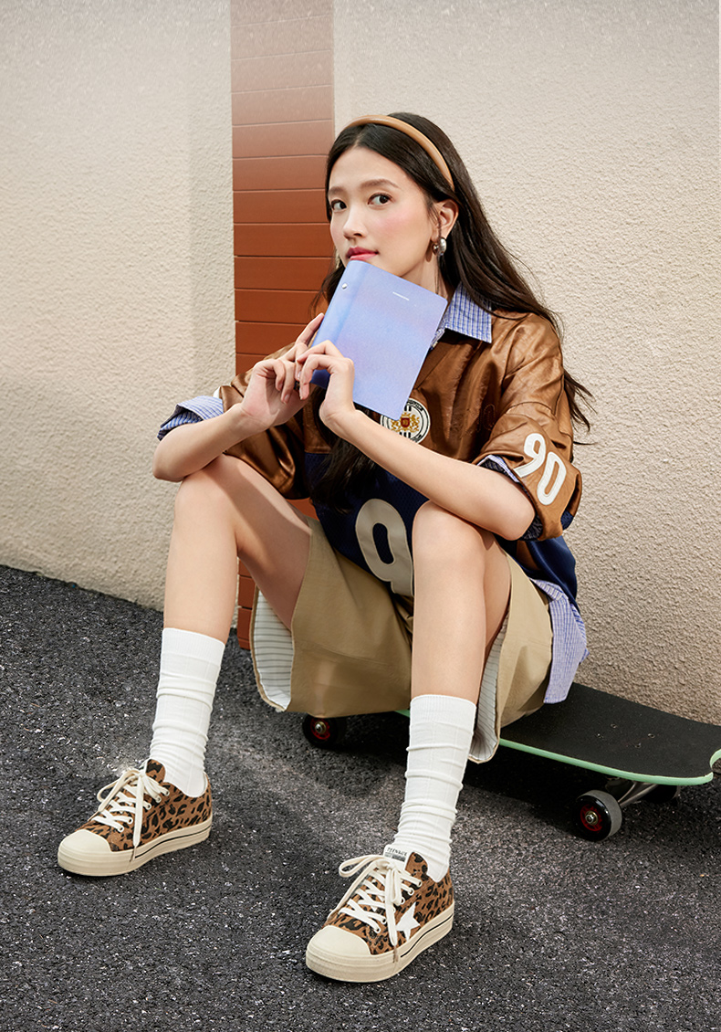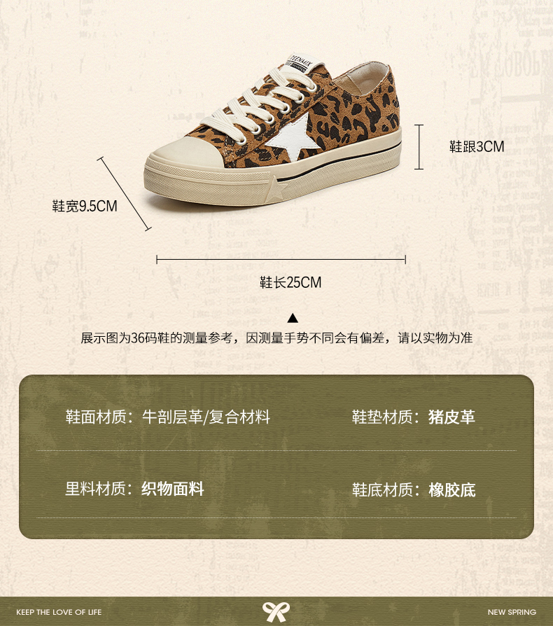 | 配跟:无 | 上市时间:2025年春季 | 鞋类流行款式:休闲鞋 | 鞋头款式:圆头 | 鞋面图案:豹纹 |