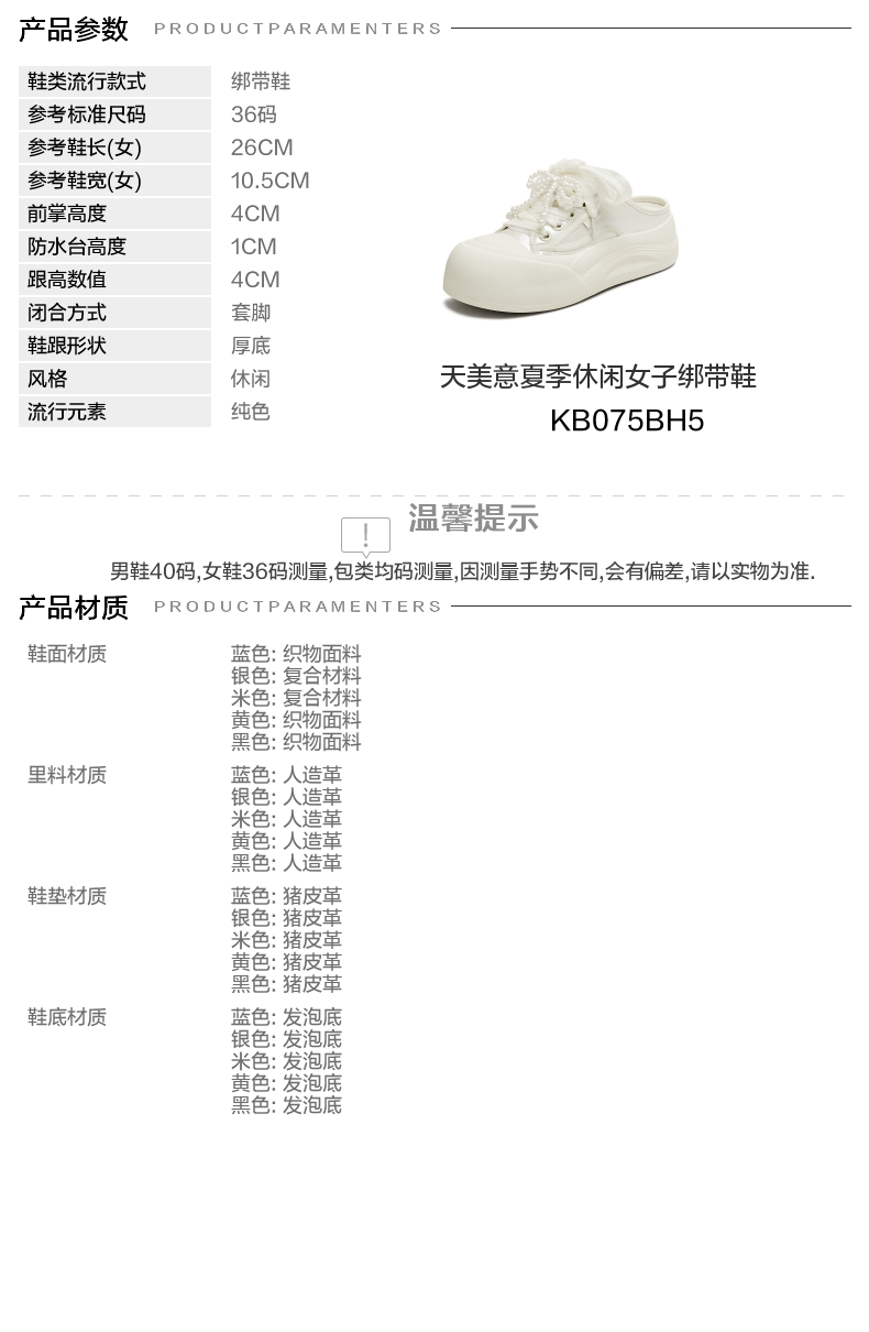| 跟高数值:4CM | 色系:米色 | 配跟:无 | 性别:女子 | 里料材质:人造革 |