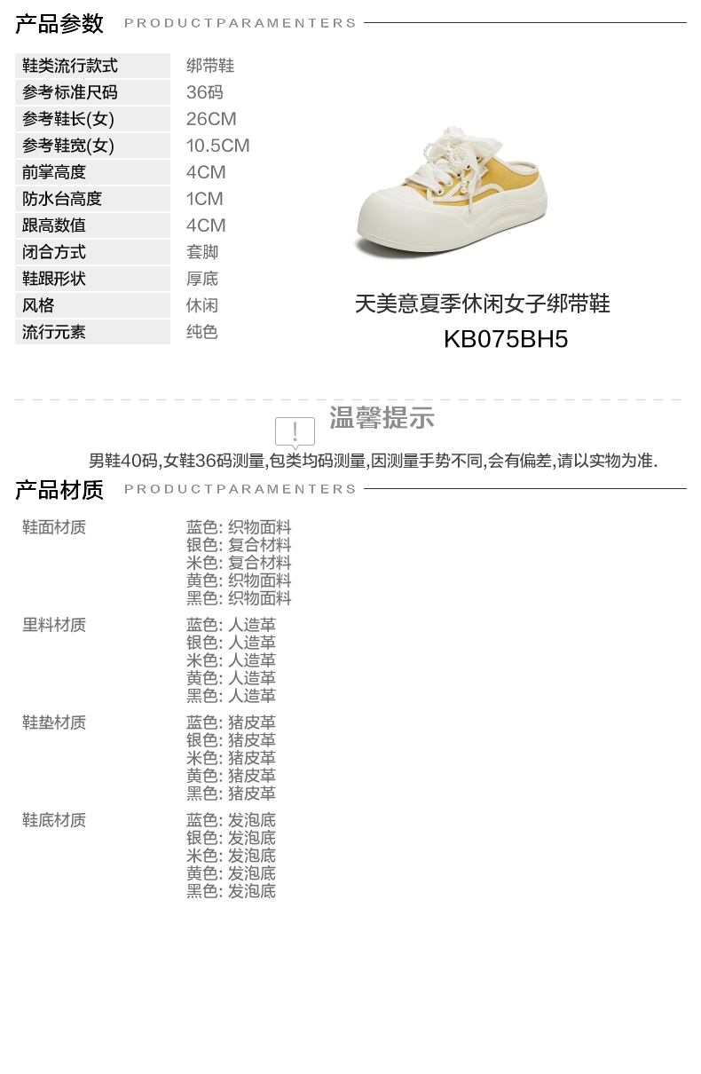 | 跟高数值:4CM | 色系:黄色 | 配跟:无 | 性别:女子 | 里料材质:人造革 |