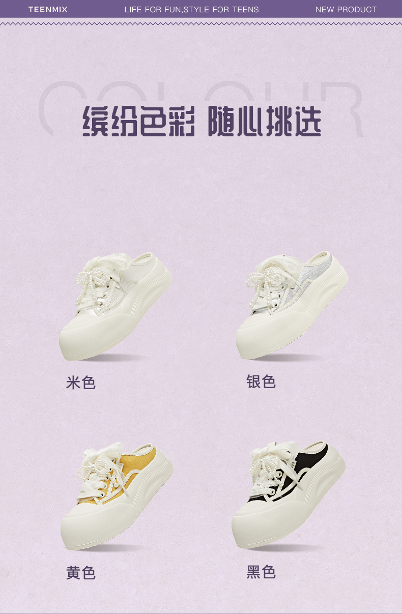 Teenmix(天美意),作为一个都市时尚休闲品牌,倡导“life for fun ,style for teens”即 “人生追求情趣,年轻追求个性”的生活品位,迎合都市年轻人不拘一格,追求mix&match自由组合,创出自我风格的潮流理念。Teenmix向人们展示了流行的转变,强调创意与个性,“teen”代表一群张扬个性、散发活力、追求都市炫彩生活的新新人群;“ mix”即mix&match,代表时尚混搭精神,品牌为年轻人提供恍如贴身订造的时尚潮品,并因应时尚的转变而响应。“随我意,天美意”传达了品牌的主张与个性。