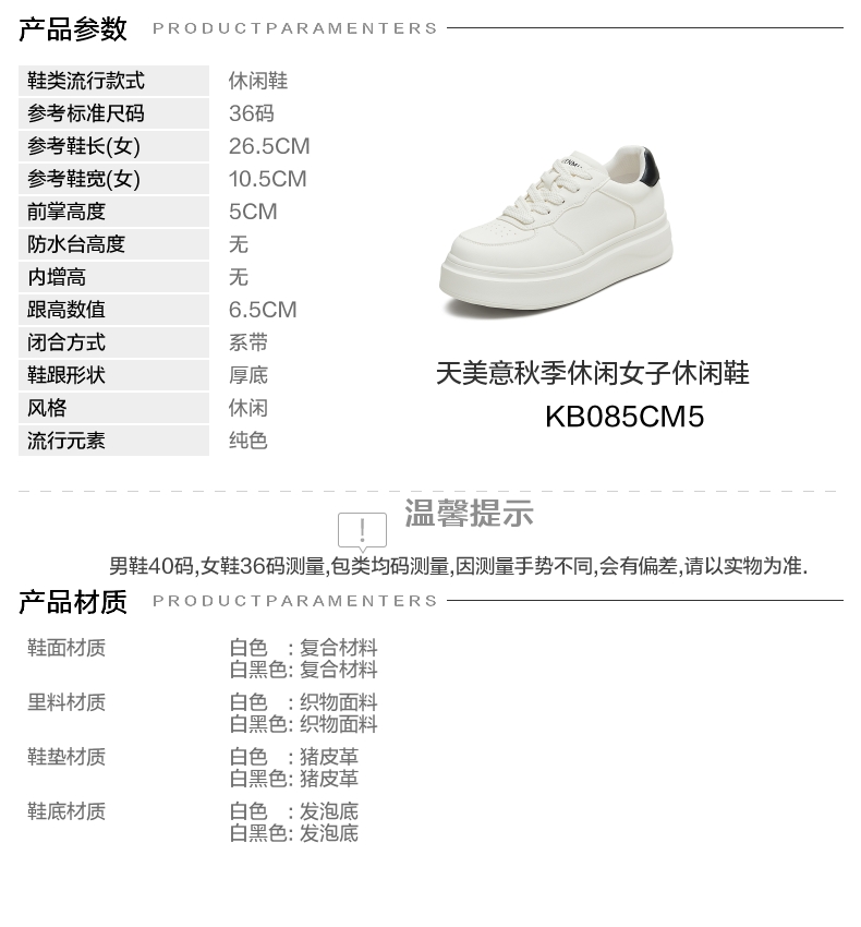 | 鞋垫材质:猪皮革 | 前掌高度:5CM | 皮质特征:复合材料/织物 | 鞋类流行款式:休闲鞋 |