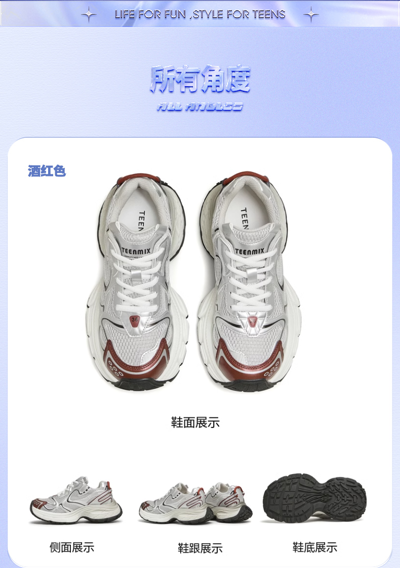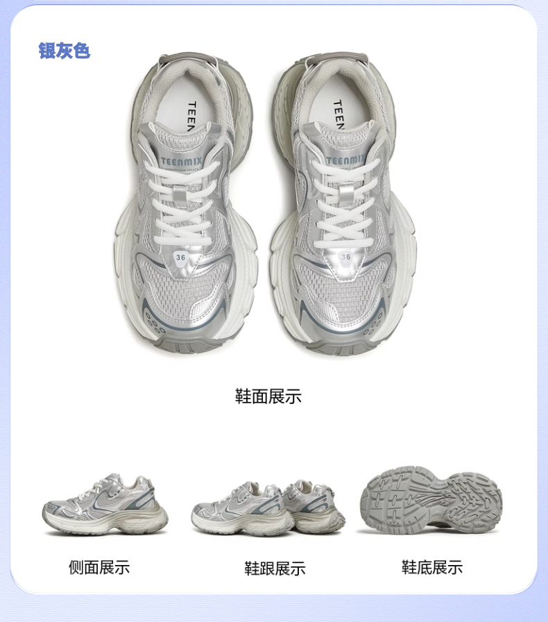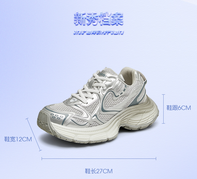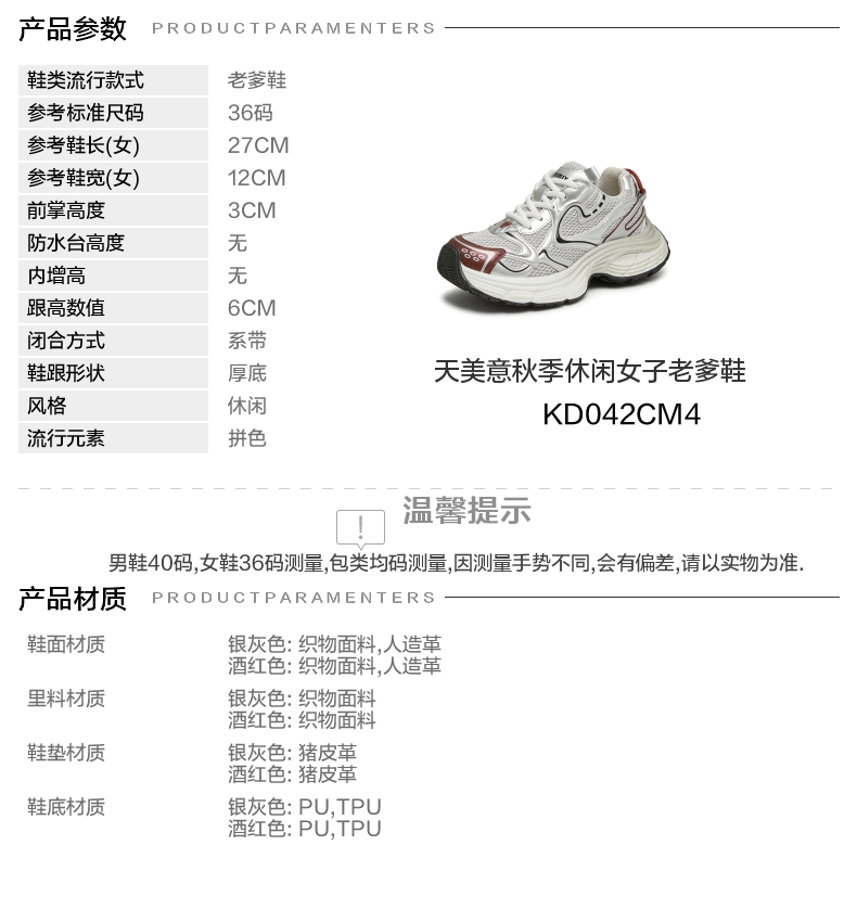 | 风格分类:老爹鞋 | 上市时间:2024年秋季 | 鞋类流行款式:老爹鞋 | 鞋头款式:圆头 | 执行标准:旅游鞋GB/T15107-2013 |