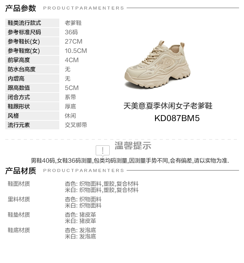 | 前掌高度:4CM | 皮质特征:织物 | 防水台高度:无 | 鞋类流行款式:老爹鞋 |