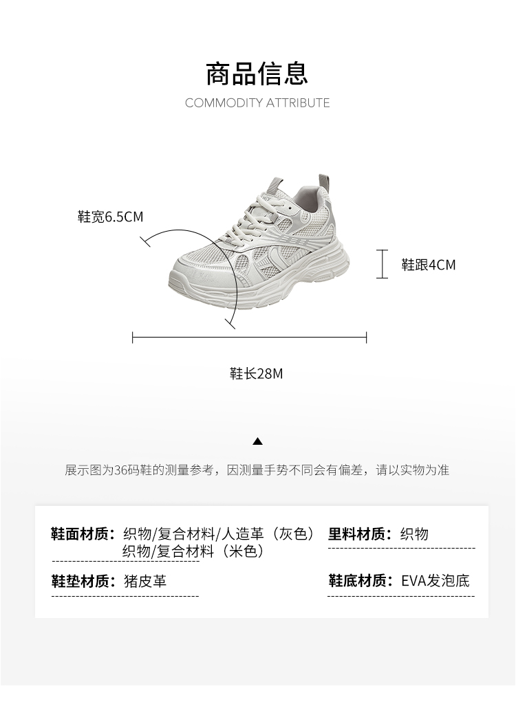 | 配跟:无 | 上市时间:2025年秋季 | 鞋类流行款式:老爹鞋 | 鞋头款式:圆头 | 鞋面图案:拼色 |