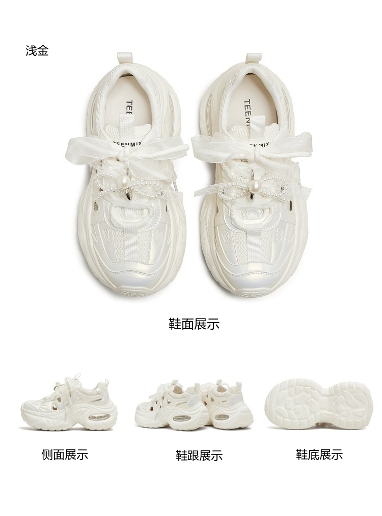 | 闭合方式:系带 | 风格:休闲 | 跟高数值:6.5CM | 色系:金色 | 配跟:无 |