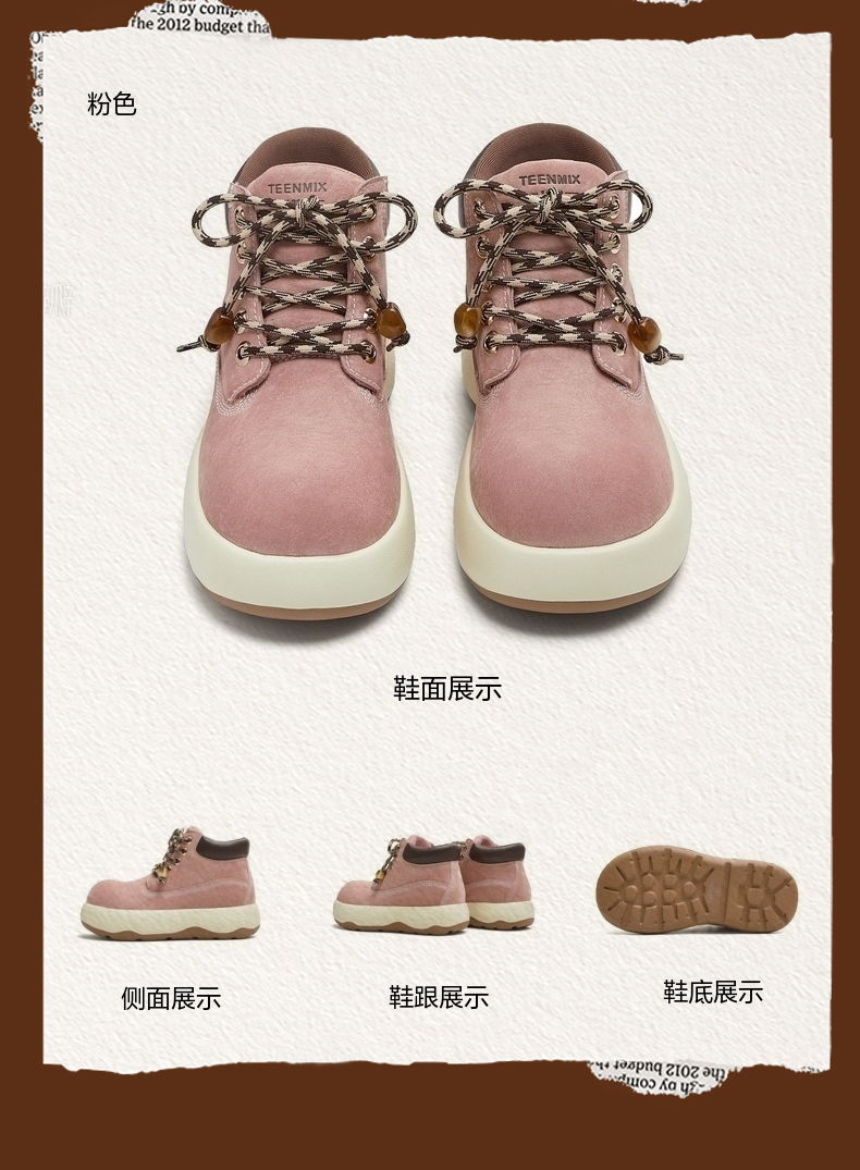 | 参考鞋宽(女):10.5CM | 风格:休闲 | 色系:粉色 | 跟高数值:4CM | 筒高数值:9.5CM |