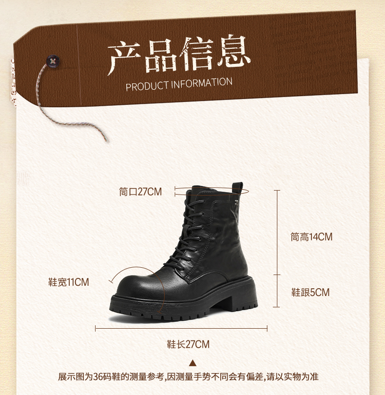 | 配跟:无 | 靴筒口围:27CM | 上市时间:2025年冬季 | 鞋类流行款式:马丁靴 | 鞋头款式:圆头 |