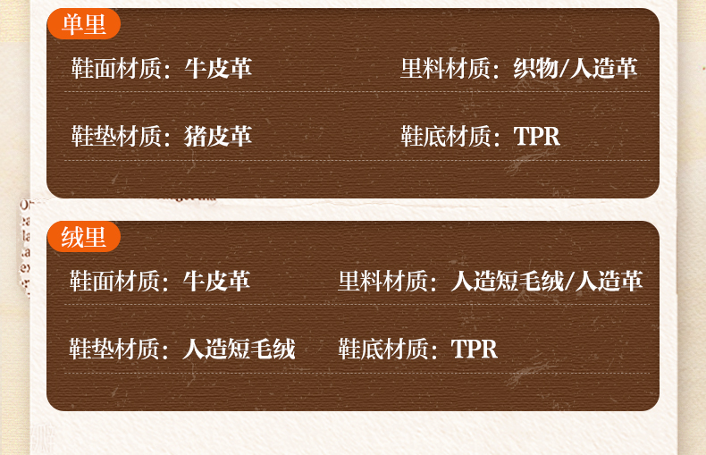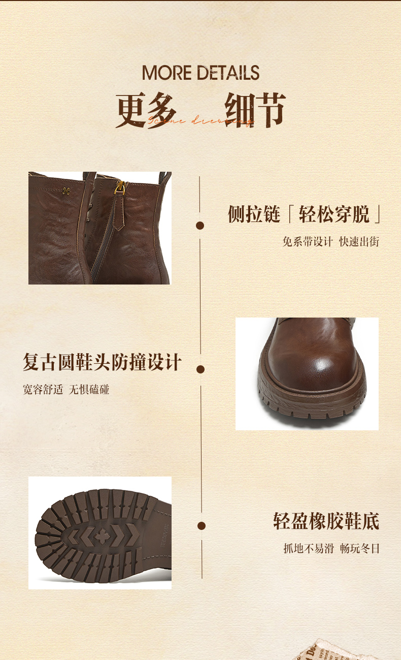 | 靴筒筒面材质:牛皮革 | 里料材质:人造革人造短毛绒 | 制鞋工艺:胶贴皮鞋 | 鞋垫材质:人造短毛绒 | 款式季节:冬季 |