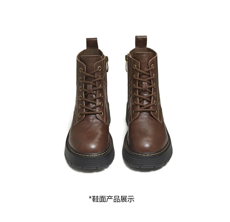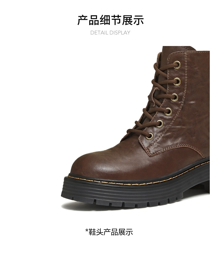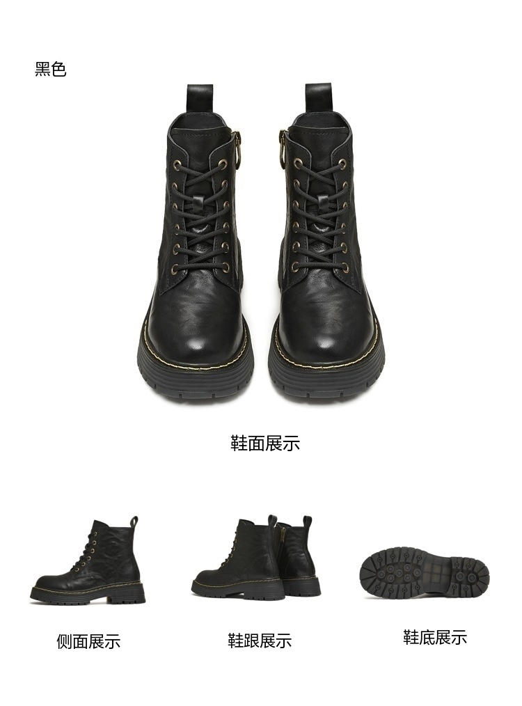 | 帮面材质:牛皮革 | 配跟:无 | 靴筒口围:25CM | 上市时间:2025年冬季 | 鞋类流行款式:马丁靴 |