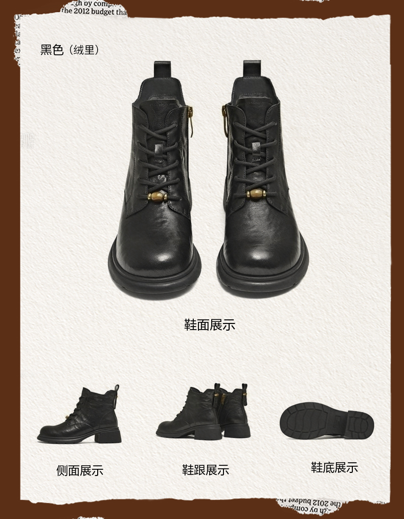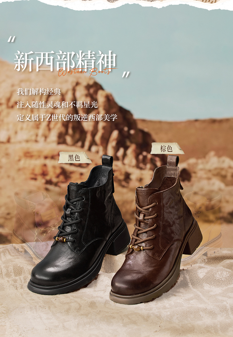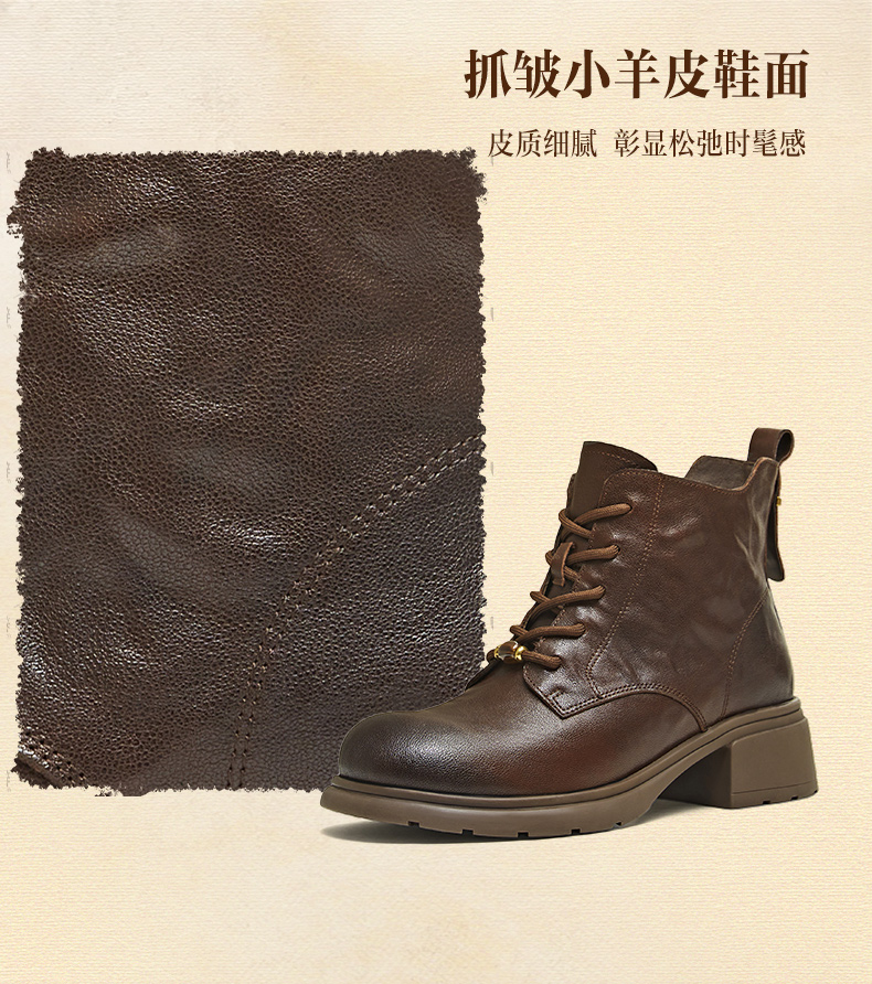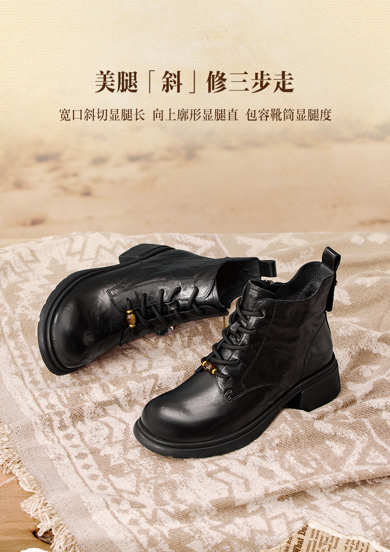 | 鞋底材质:橡胶底 | 靴筒内里材质:织物面料猪皮革 | 内增高:无 | 鞋面材质:羊皮革 | 闭合方式:系带 |