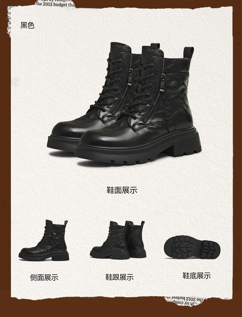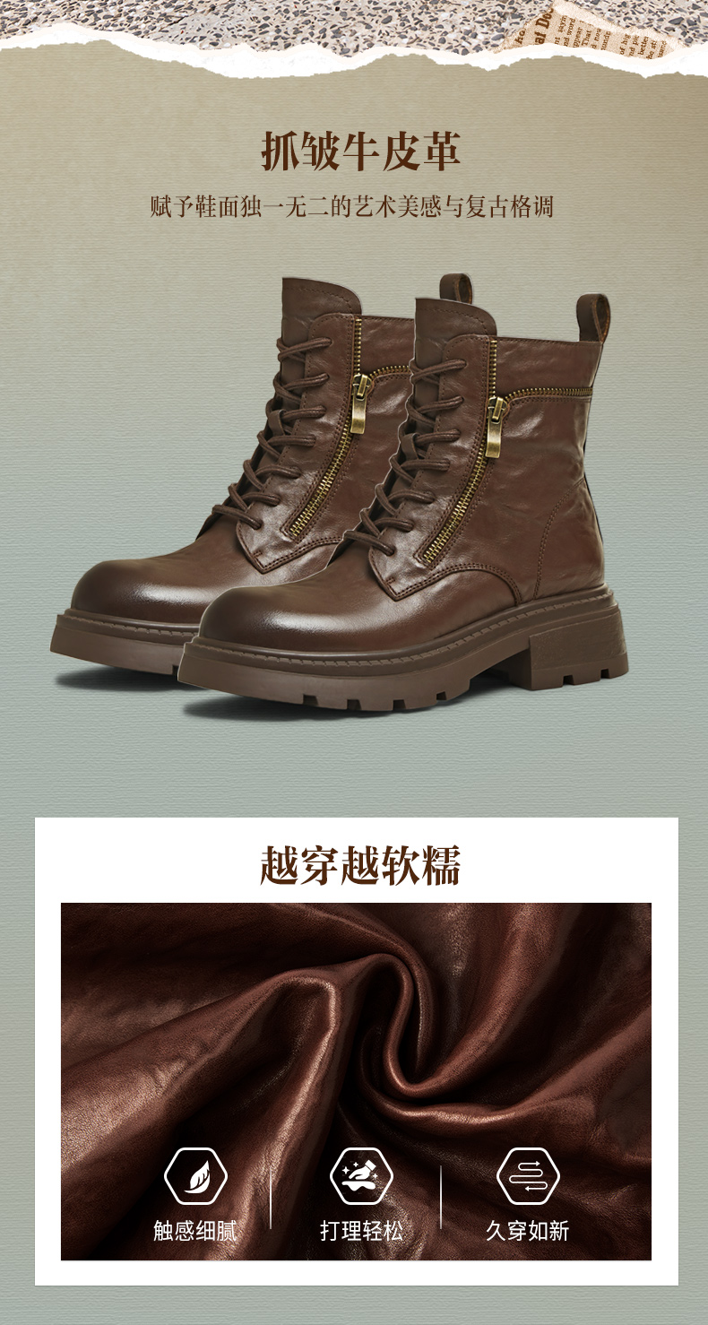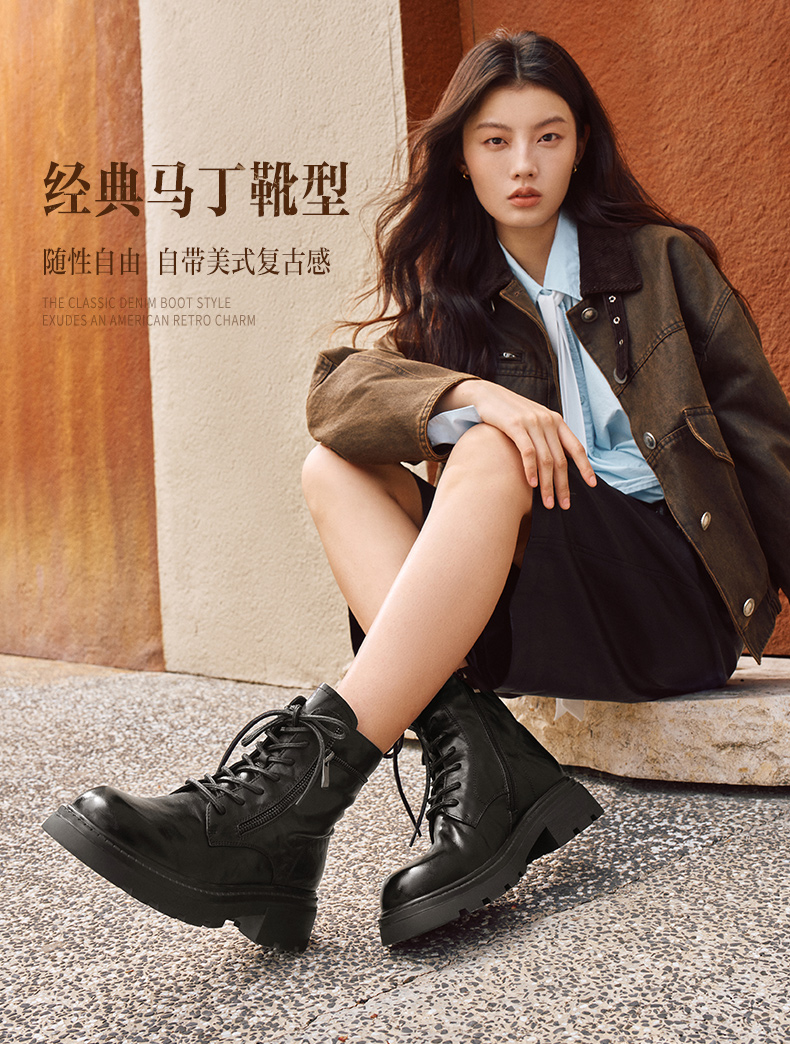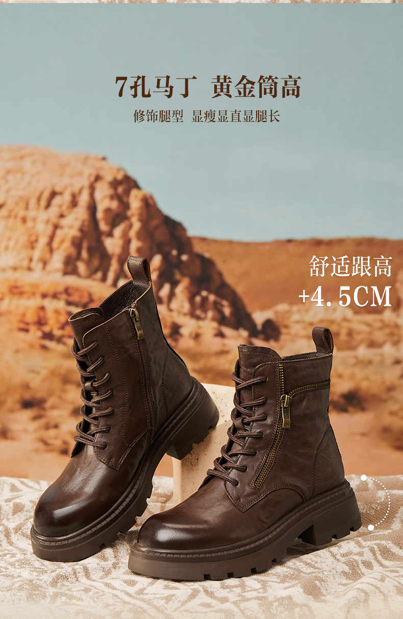 | 帮面材质:牛皮革 | 配跟:无 | 靴筒口围:26CM | 上市时间:2025年冬季 | 鞋类流行款式:马丁靴 |