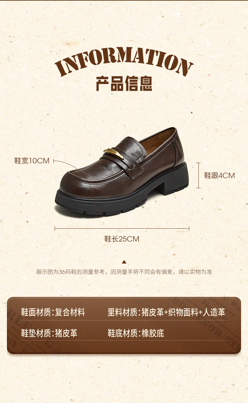 | 性别:女子 | 里料材质:人造革猪皮革织物面料 | 上市时间:2025年秋季 | 制鞋工艺:胶贴皮鞋 | 款式季节:秋季 |