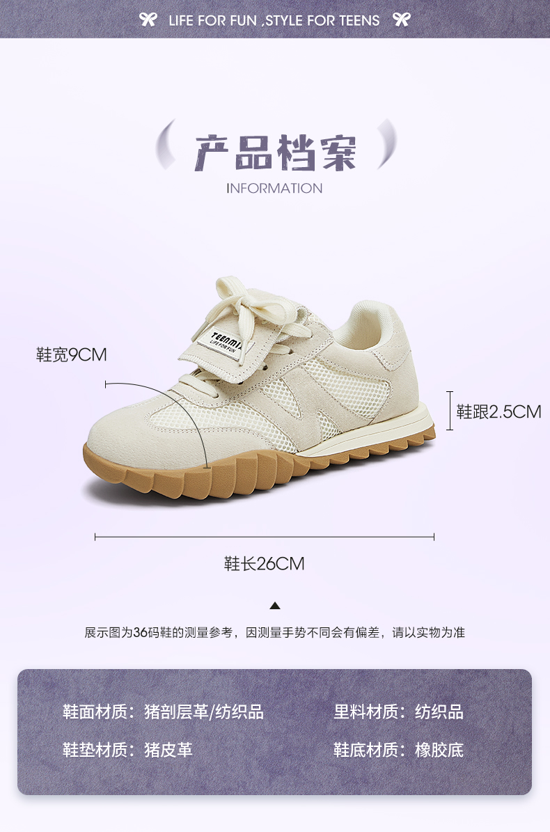 | 参考鞋宽(女):9CM | 风格:休闲 | 年份:2024年 | 色系:紫色 | 参考标准尺码:36码 |