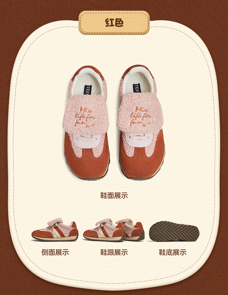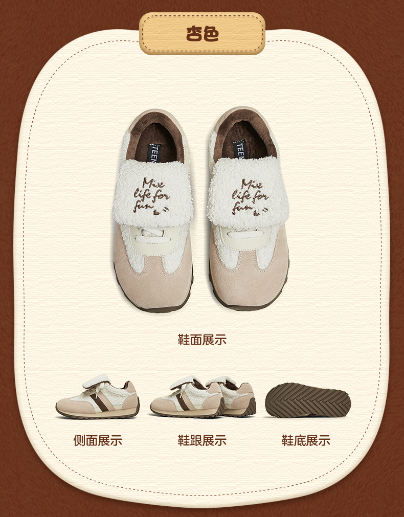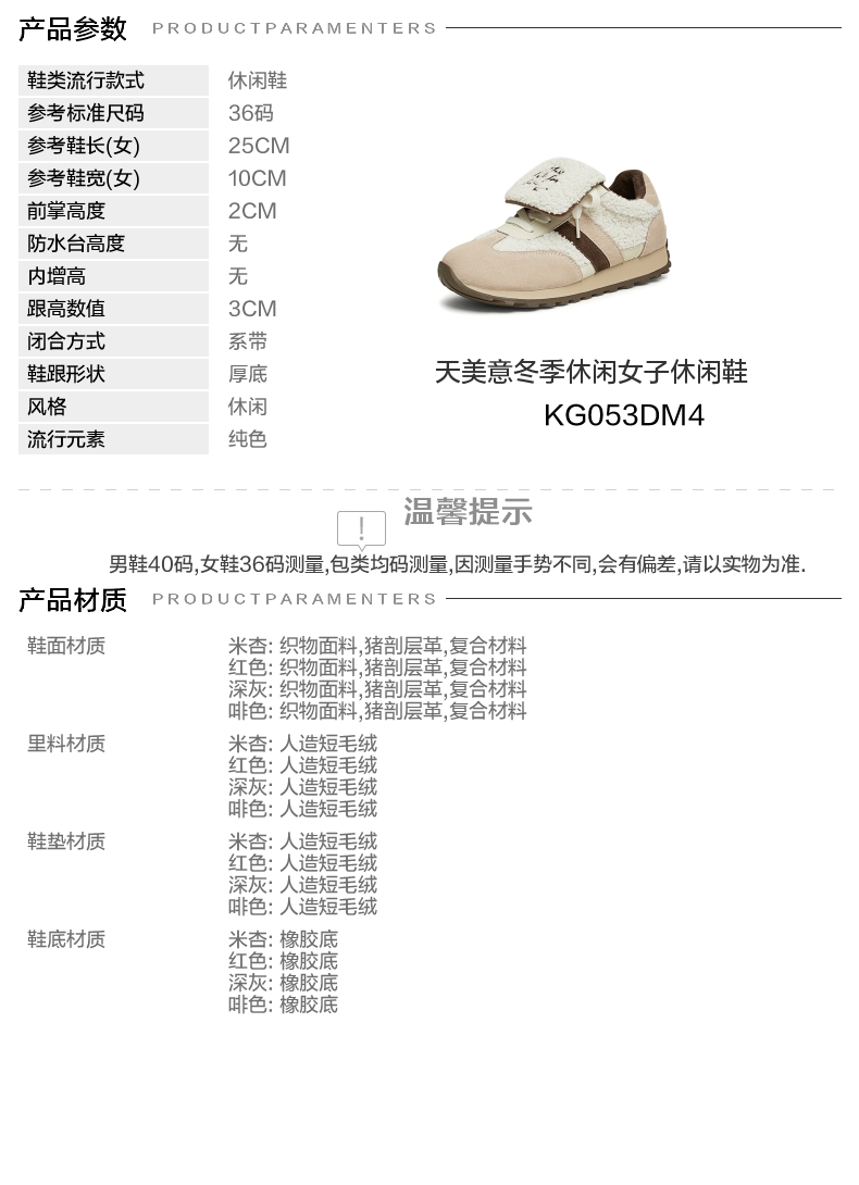 | 色系:卡其 | 跟高数值:3CM | 性别:女子 | 里料材质:人造短毛绒 | 制鞋工艺:胶贴皮鞋 |