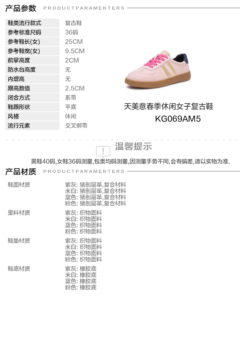 | 风格分类:德训鞋 | 上市时间:2025年春季 | 鞋类流行款式:复古鞋 | 鞋头款式:圆头 | 执行标准:休闲鞋 QB/T2955-2017 |