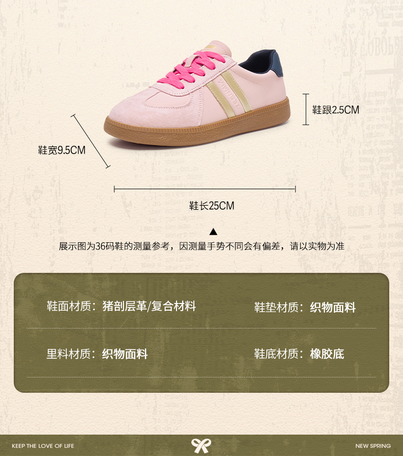 | 参考鞋宽(女):9.5CM | 风格:休闲 | 年份:2025年 | 色系:粉色 | 参考标准尺码:36码 |