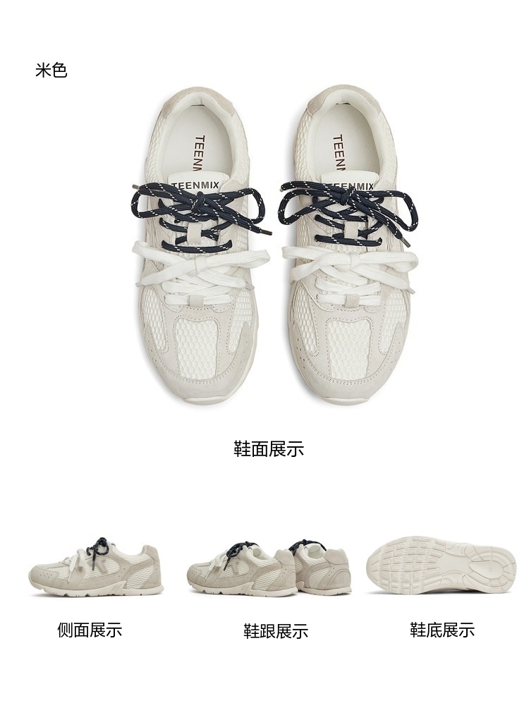 | 参考鞋宽(女):9.5CM | 风格:时尚休闲 | 年份:2025年 | 色系:米色 | 参考标准尺码:36码 |