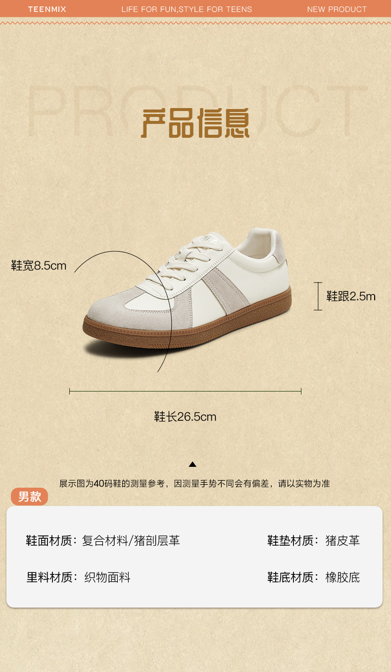 | 40码鞋长参考(男):26.5CM | 鞋帮:低帮 | 鞋头款式:圆头 | 鞋底材质:橡胶底 | 鞋面图案:纯色 |