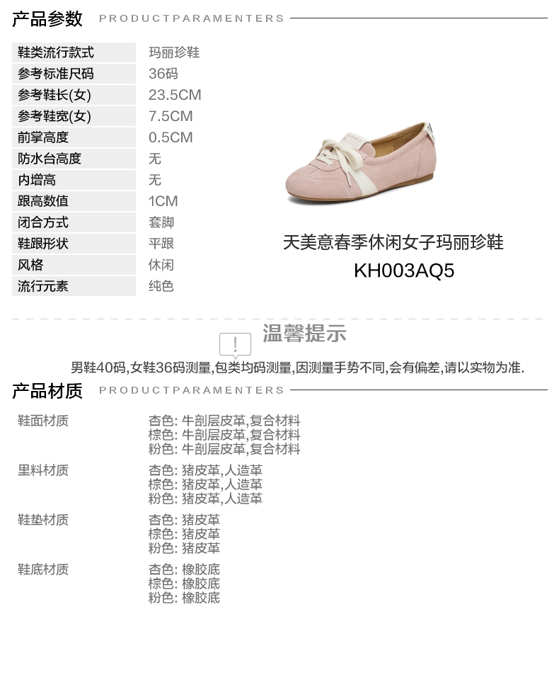 | 上市时间:2025年春季 | 鞋类流行款式:玛丽珍鞋 | 鞋头款式:圆头 | 跟高范围:平跟鞋 | 鞋面图案:纯色 |