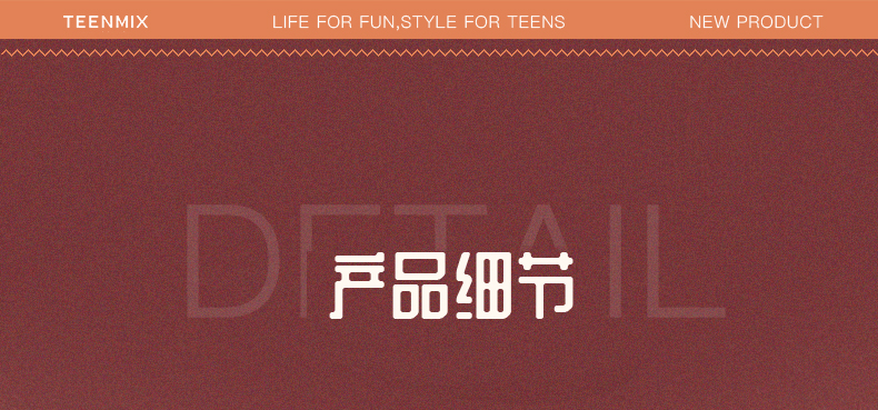 Teenmix(天美意),作为一个都市时尚休闲品牌,倡导“life for fun ,style for teens”即 “人生追求情趣,年轻追求个性”的生活品位,迎合都市年轻人不拘一格,追求mix&match自由组合,创出自我风格的潮流理念。Teenmix向人们展示了流行的转变,强调创意与个性,“teen”代表一群张扬个性、散发活力、追求都市炫彩生活的新新人群;“ mix”即mix&match,代表时尚混搭精神,品牌为年轻人提供恍如贴身订造的时尚潮品,并因应时尚的转变而响应。“随我意,天美意”传达了品牌的主张与个性。