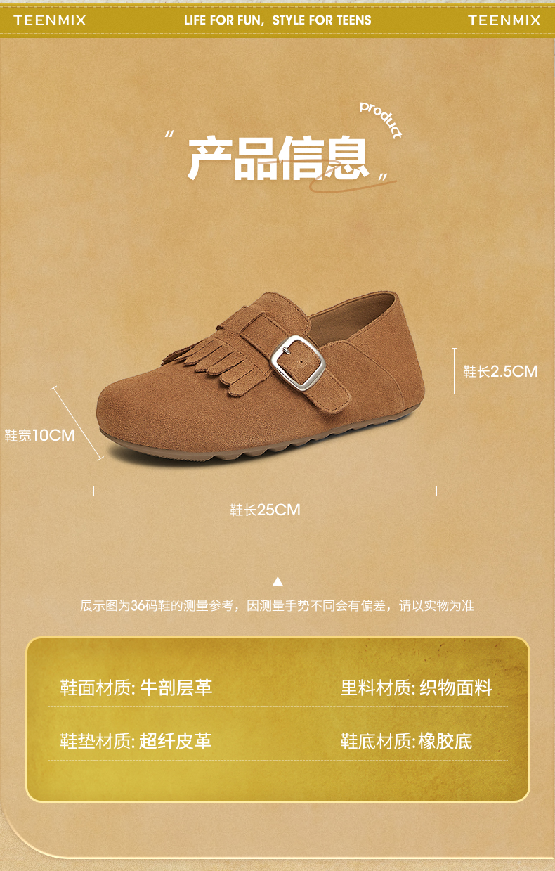 | 参考鞋宽(女):10CM | 风格:休闲 | 年份:2025年 | 色系:杏色 | 参考标准尺码:36码 |
