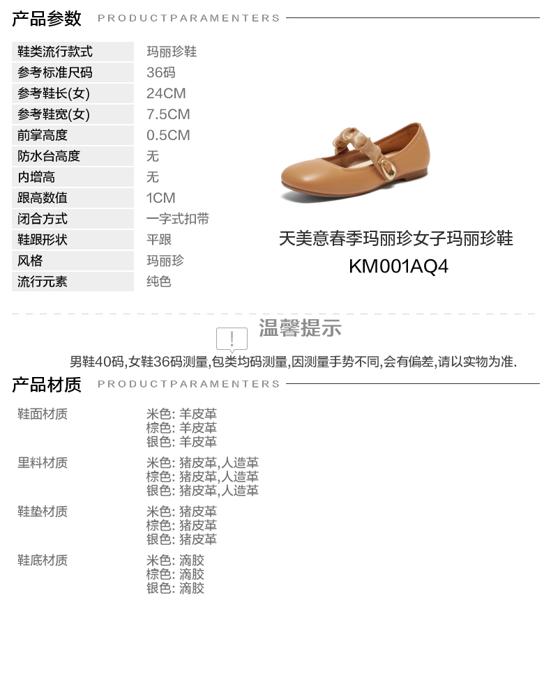 | 参考鞋长(女):24CM | 参考鞋宽(女):7.5CM | 风格:玛丽珍 | 色系:棕色 | 参考标准尺码:36码 |