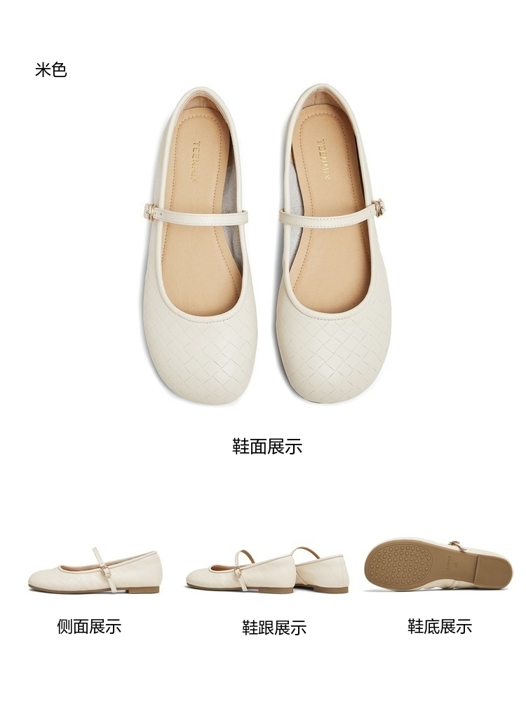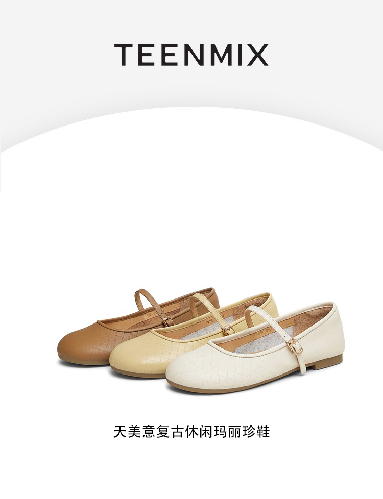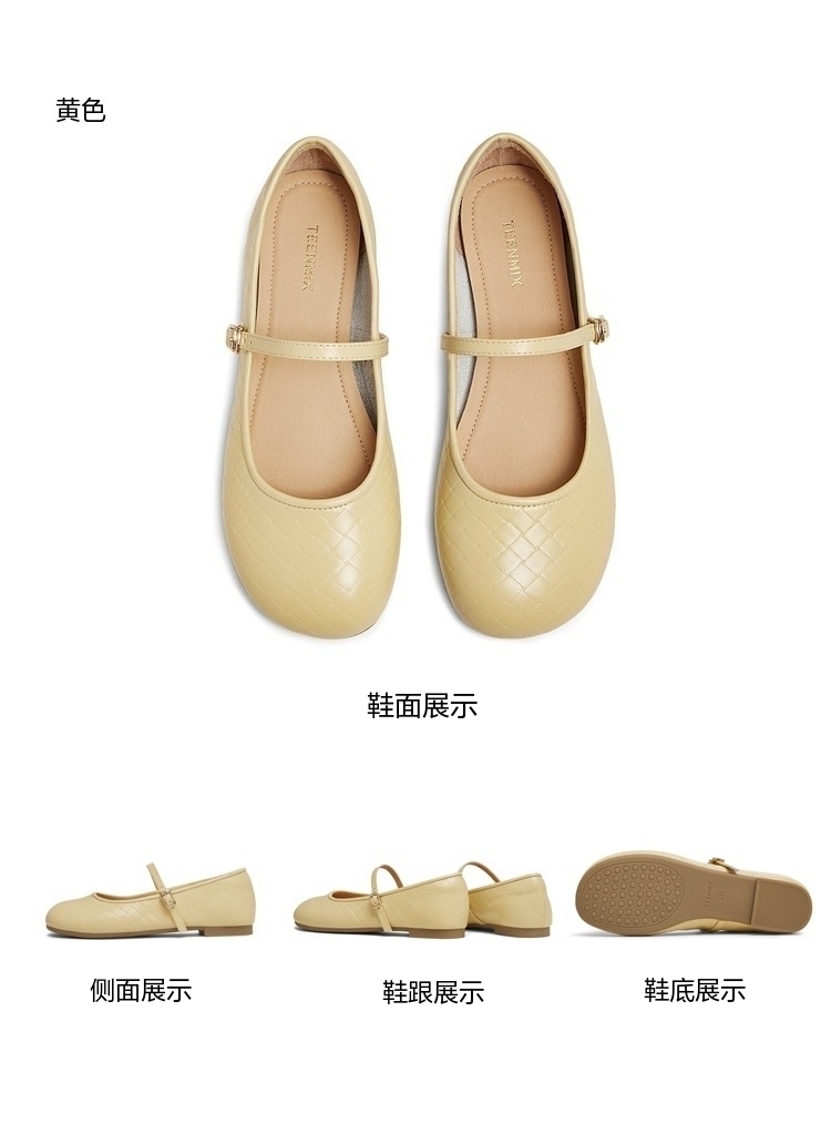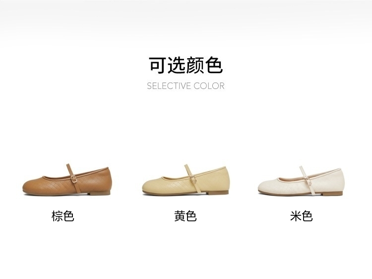 | 上市时间:2025年春季 | 鞋类流行款式:玛丽珍鞋 | 鞋头款式:圆头 | 跟高范围:平跟鞋 | 鞋面图案:纯色 |