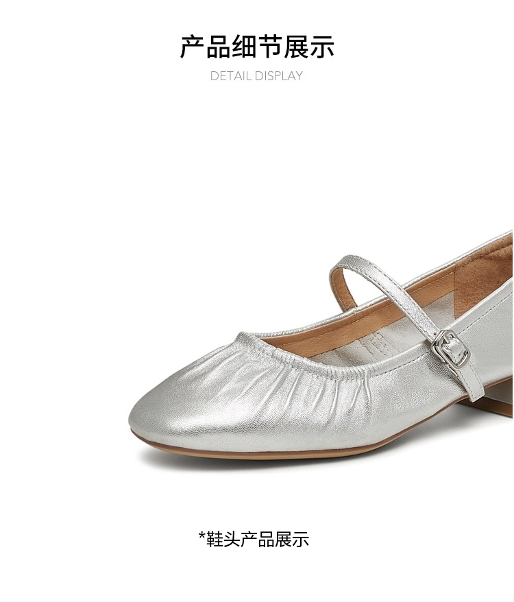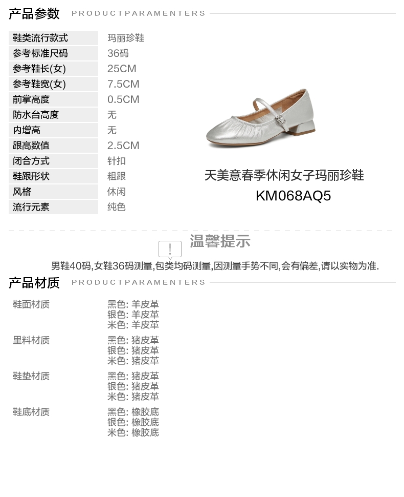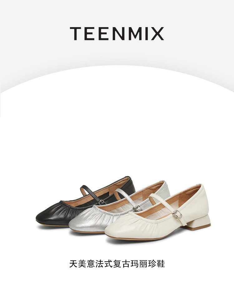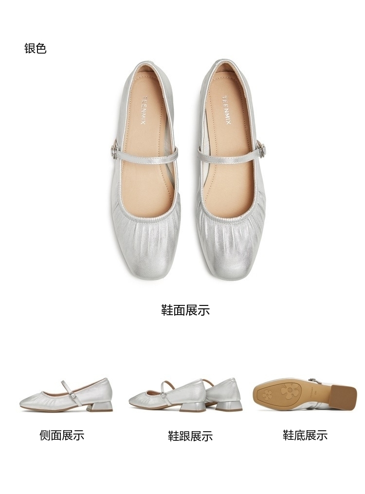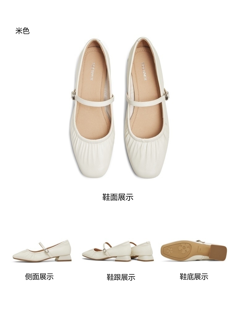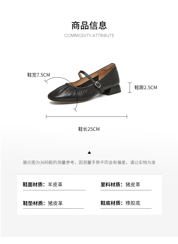 | 上市时间:2025年春季 | 鞋类流行款式:玛丽珍鞋 | 鞋头款式:圆头 | 跟高范围:低跟鞋(小于3CM) | 鞋面图案:纯色 |