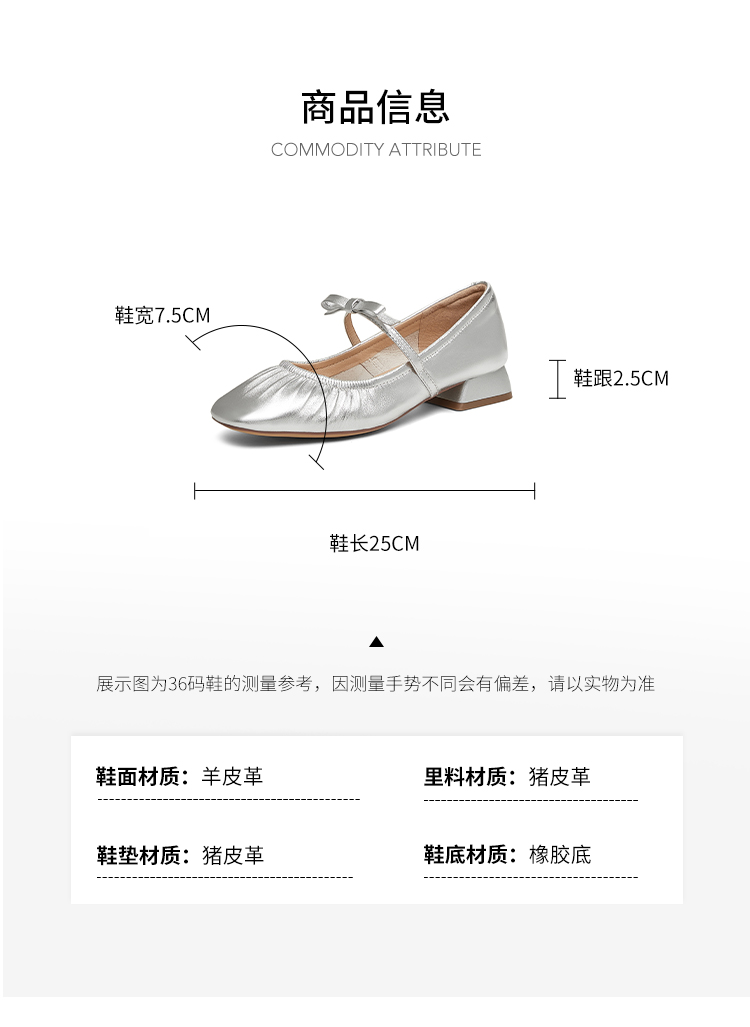 | 皮质特征:羊皮革 | 前掌高度:0.5CM | 防水台高度:无 | 鞋类流行款式:玛丽珍鞋 |