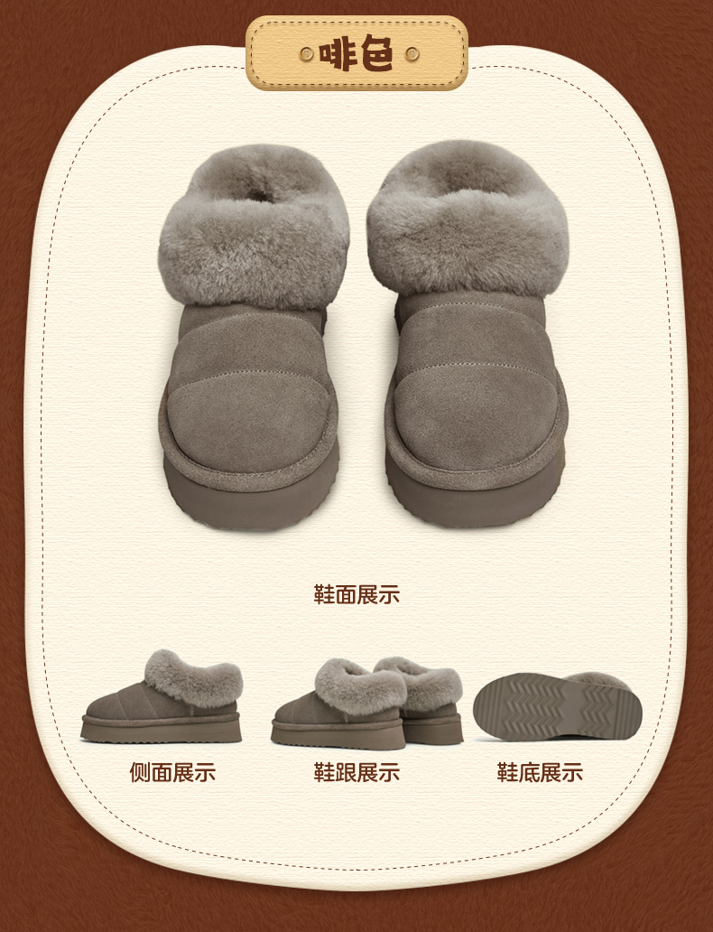 | 制鞋工艺:胶贴皮鞋 | 款式季节:冬季 | 鞋垫材质:羊毛 | 渠道划分:电商专销 | 前掌高度:3CM |