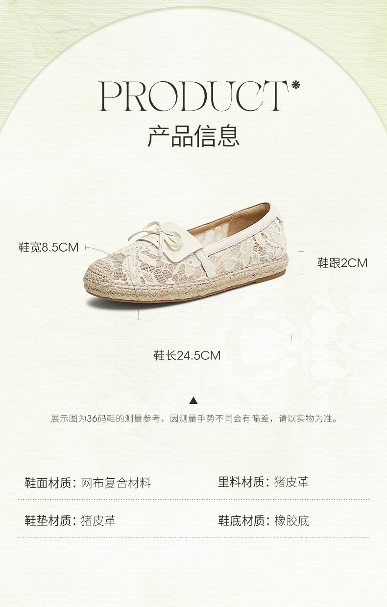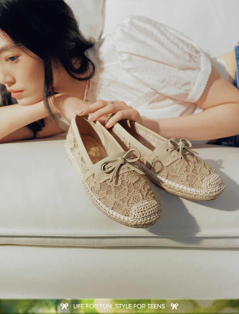| 上市时间:2025年夏季 | 鞋类流行款式:渔夫鞋 | 鞋头款式:圆头 | 鞋面图案:纯色 | 鞋跟形状:平跟 |