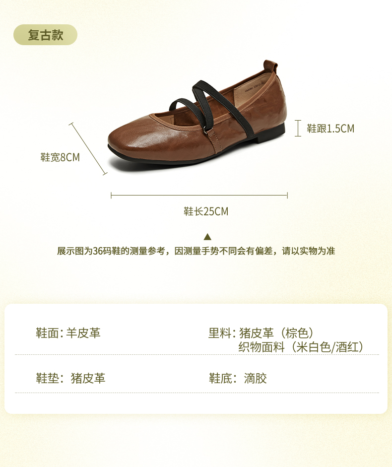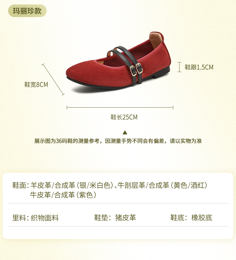 | 皮质特征:皮革 | 前掌高度:无 | 防水台高度:无 | 鞋类流行款式:玛丽珍鞋 |