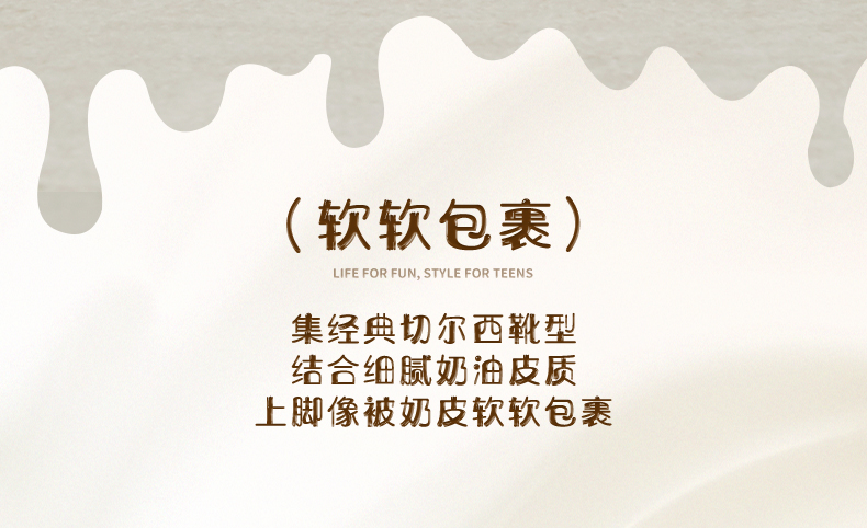 Teenmix(天美意),作为一个都市时尚休闲品牌,倡导“life for fun ,style for teens”即 “人生追求情趣,年轻追求个性”的生活品位,迎合都市年轻人不拘一格,追求mix&match自由组合,创出自我风格的潮流理念。Teenmix向人们展示了流行的转变,强调创意与个性,“teen”代表一群张扬个性、散发活力、追求都市炫彩生活的新新人群;“ mix”即mix&match,代表时尚混搭精神,品牌为年轻人提供恍如贴身订造的时尚潮品,并因应时尚的转变而响应。“随我意,天美意”传达了品牌的主张与个性。