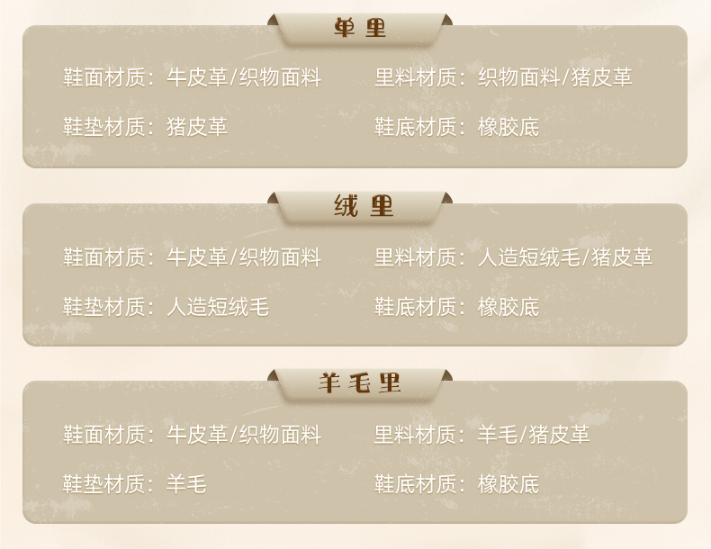 | 里料材质:织物面料猪皮革 | 制鞋工艺:胶贴皮鞋 | 款式季节:冬季 | 鞋垫材质:猪皮革 | 渠道划分:电商专销 |