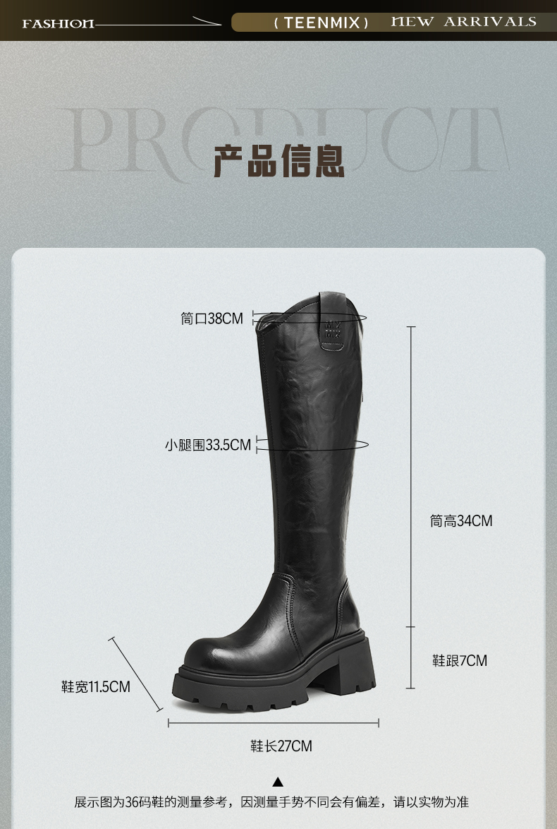 | 配跟:无 | 靴筒口围:38CM | 上市时间:2024年冬季 | 鞋类流行款式:骑士靴 | 鞋头款式:圆头 |
