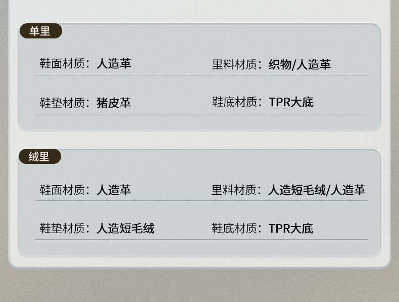 | 靴筒筒面材质:人造革 | 靴筒小腿围:33.5CM | 里料材质:人造革人造短毛绒 | 制鞋工艺:胶贴皮鞋 | 鞋垫材质:人造短毛绒 |
