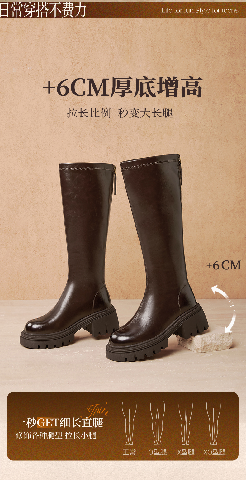| 风格:休闲 | 色系:棕色 | 跟高数值:6CM | 性别:女子 | 筒高数值:36CM |