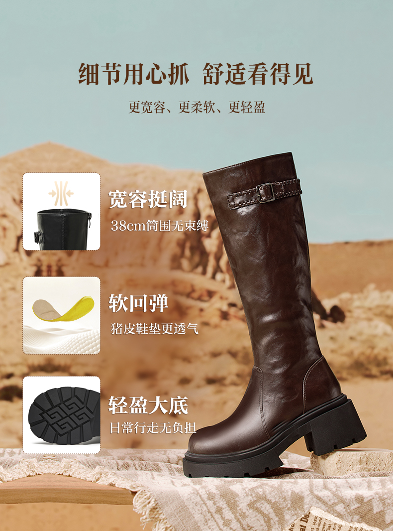 | 风格:休闲 | 色系:咖啡色 | 跟高数值:7.5CM | 性别:女子 | 筒高数值:35CM |