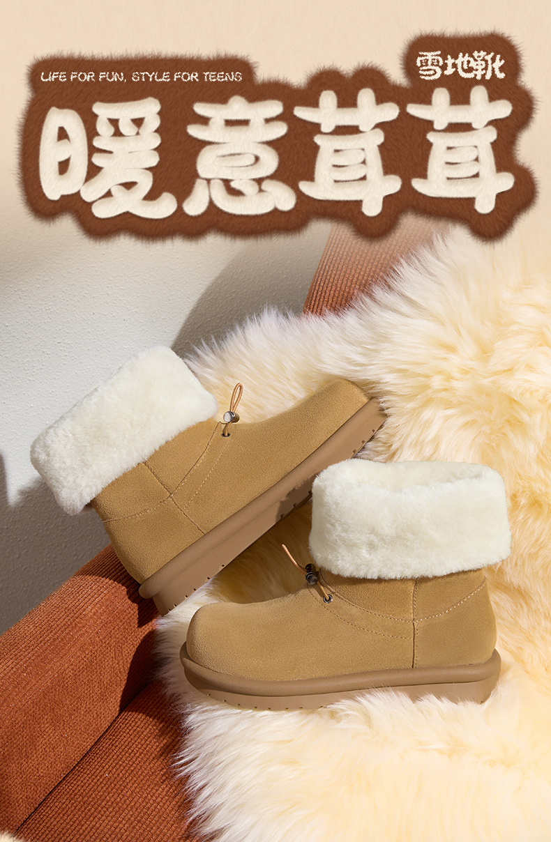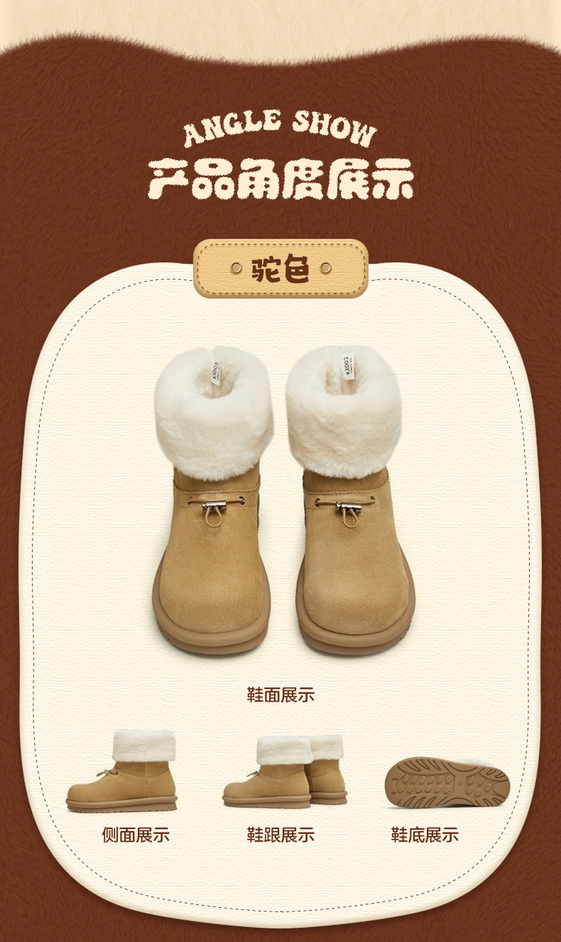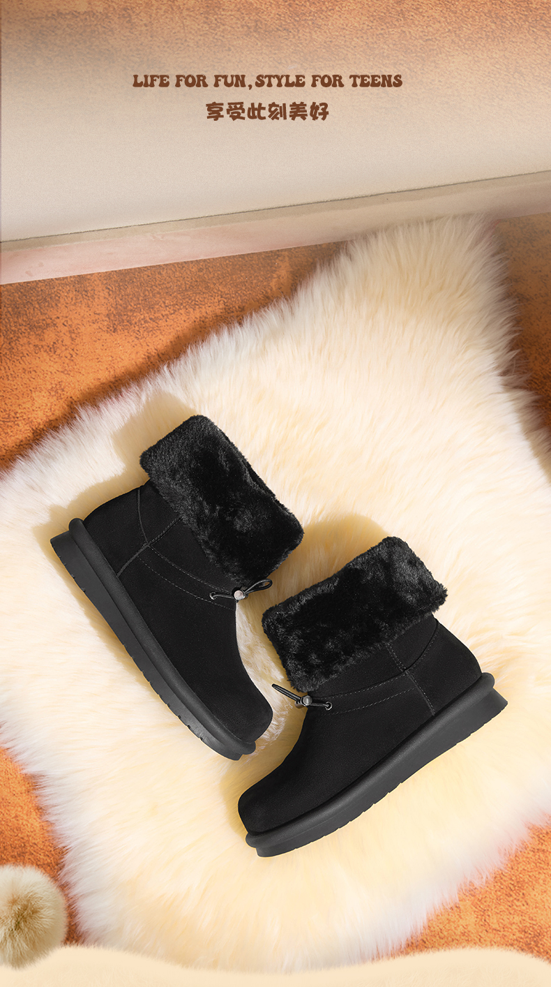 | 里料材质:织物面料人造毛绒 | 制鞋工艺:胶贴皮鞋 | 款式季节:冬季 | 鞋垫材质:人造毛绒 | 渠道划分:电商专销 |