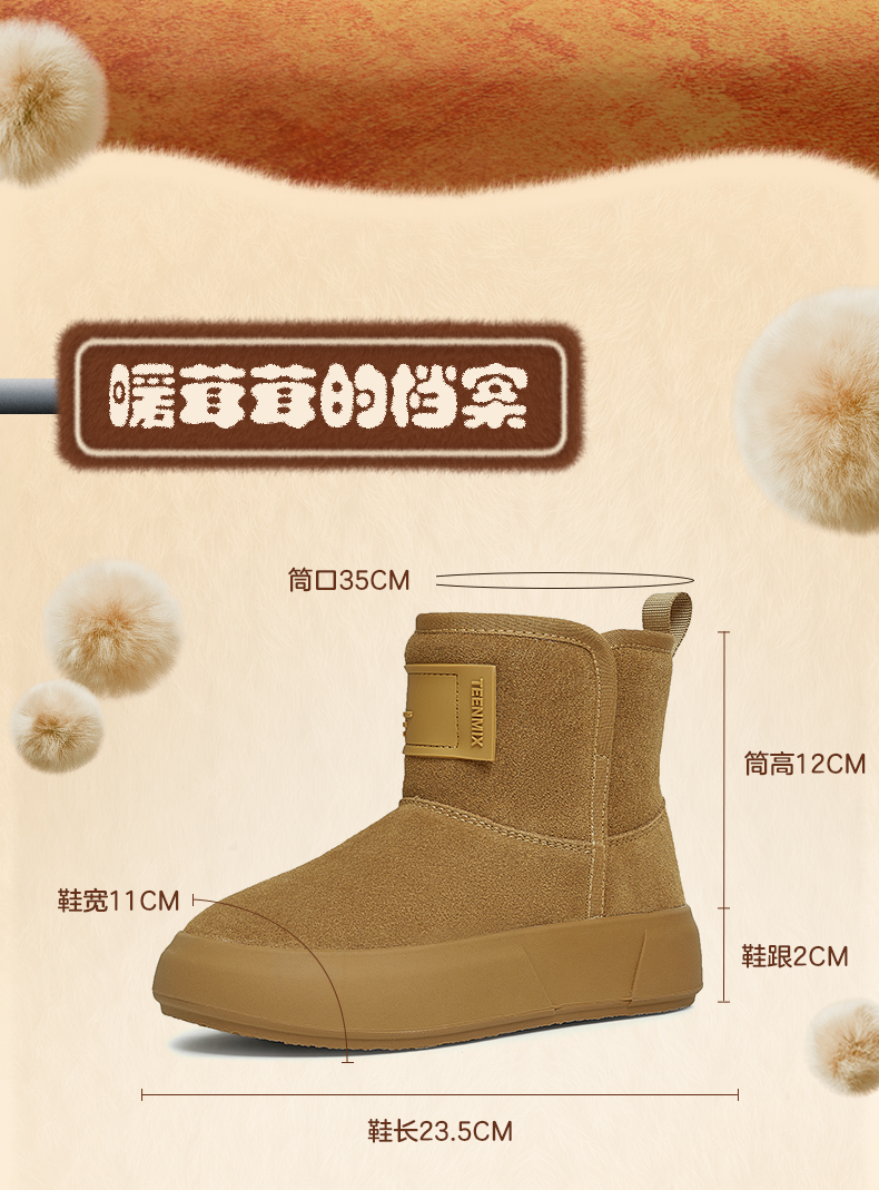 | 帮面材质:牛剖层革 | 靴筒口围:35CM | 风格分类:雪地靴 | 上市时间:2024年冬季 | 鞋类流行款式:雪地靴 |