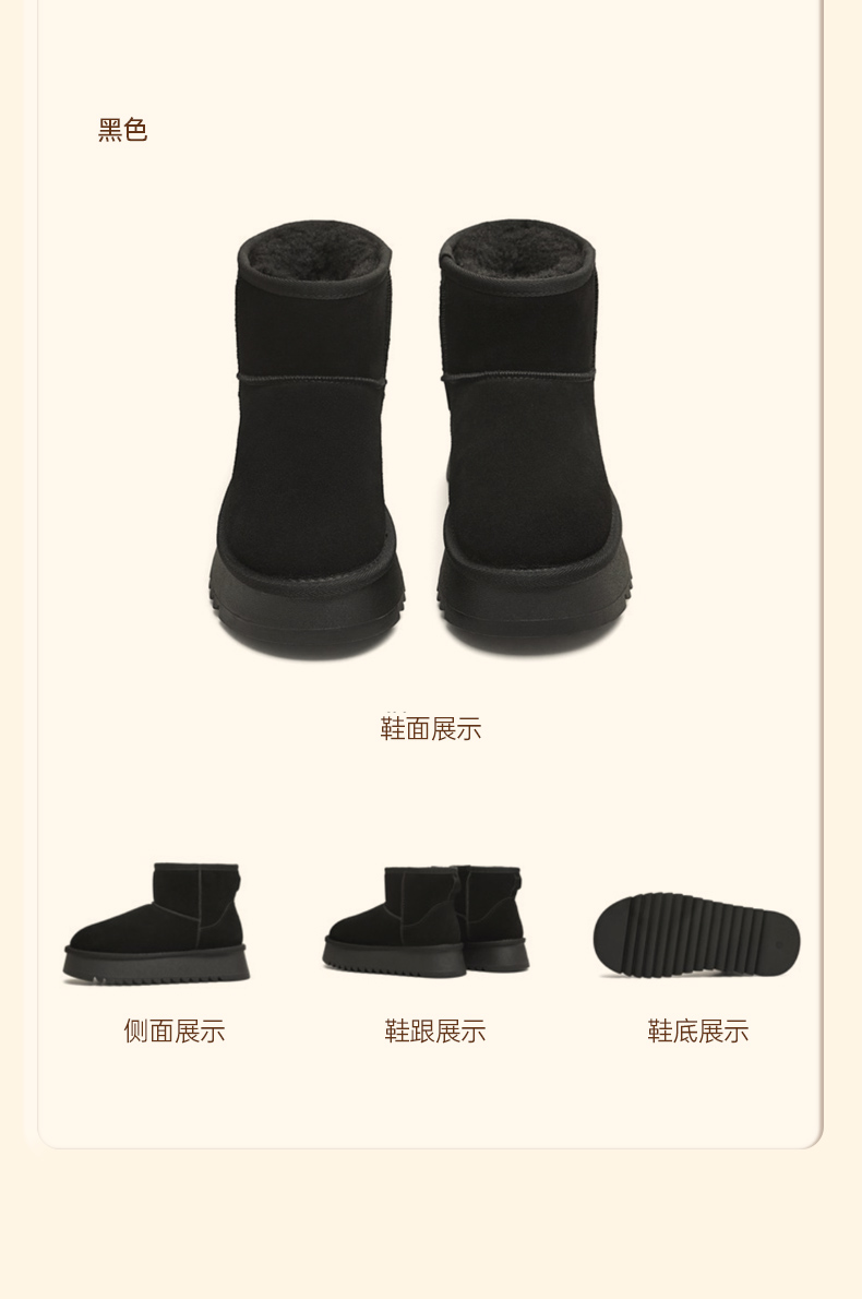 | 款式季节:冬季 | 前掌高度:无 | 皮质特征:二层皮 |