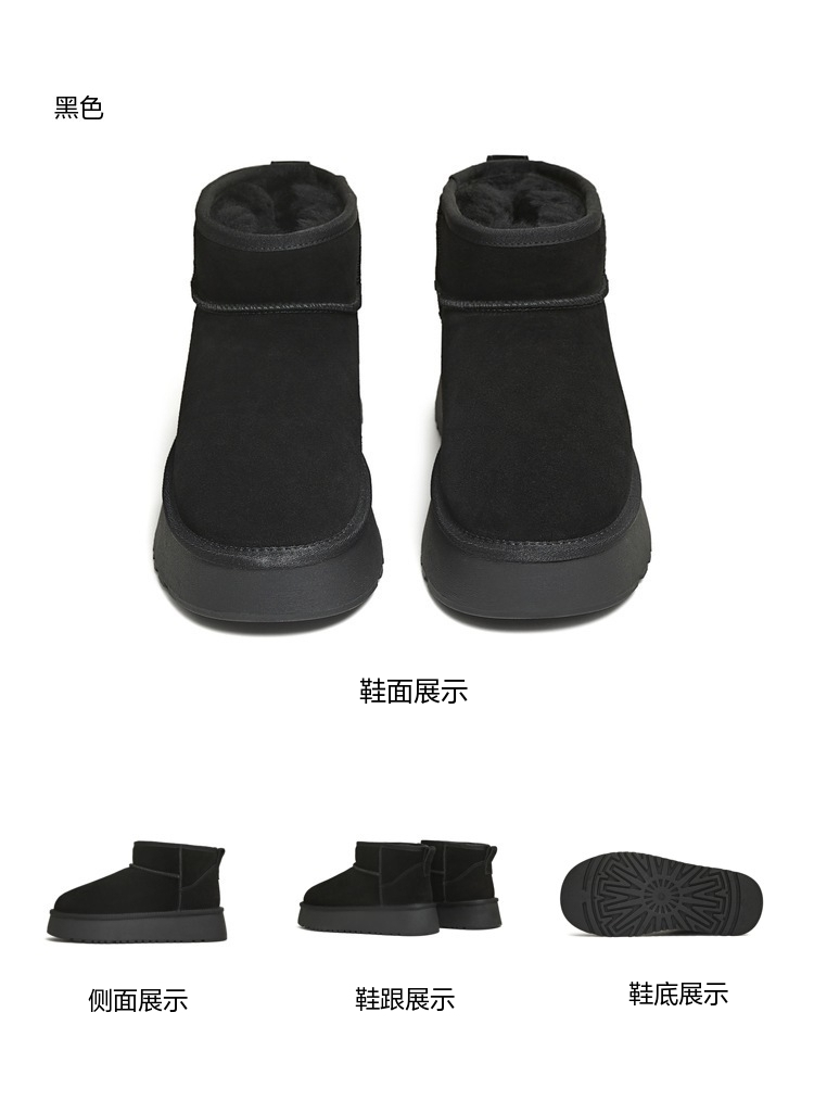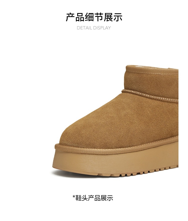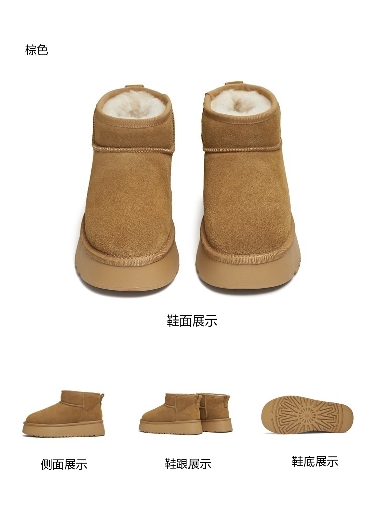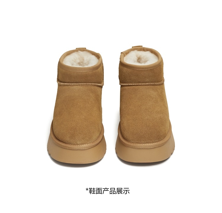 | 帮面材质:牛剖层革 | 配跟:无 | 靴筒口围:33.5CM | 上市时间:2025年冬季 | 鞋类流行款式:雪地靴 |